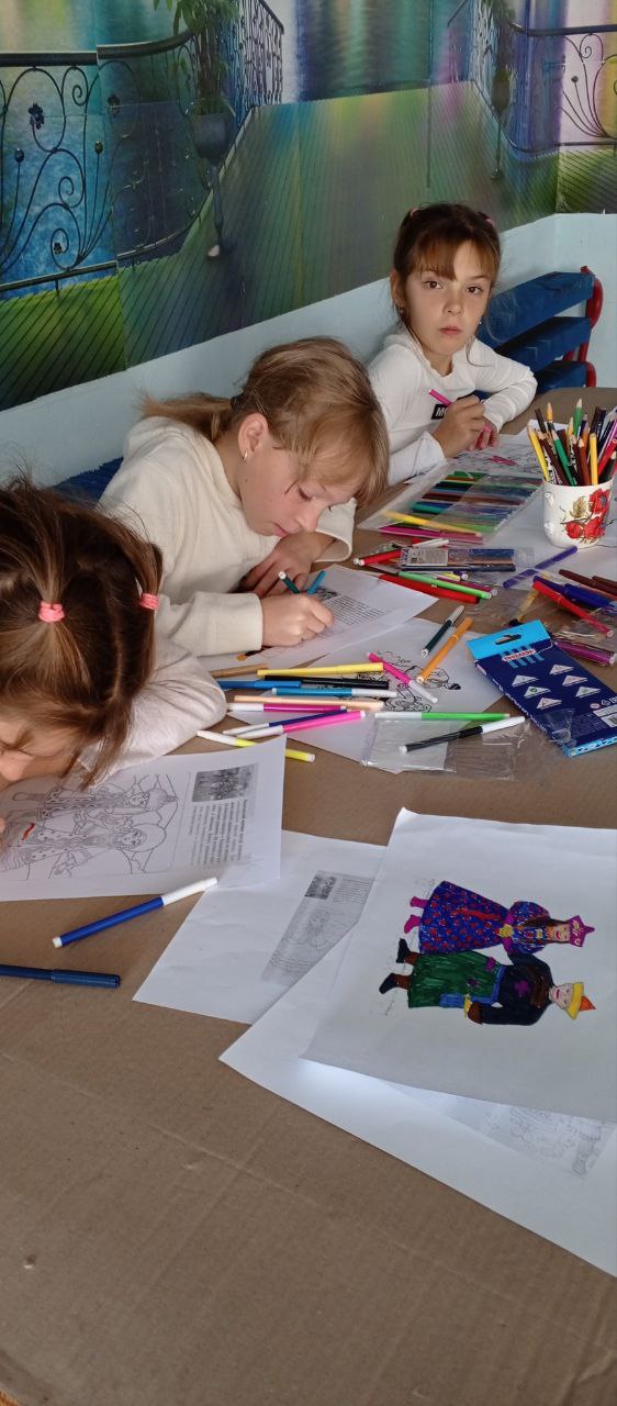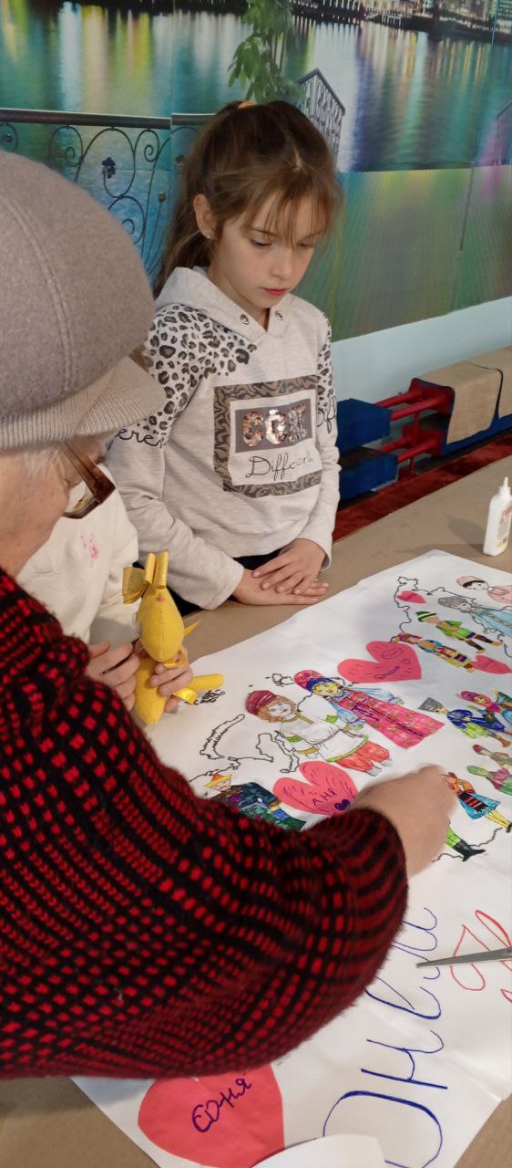 В начале акции дети из кружка «Умные руки» продемонстрировали свой талант, нарисовав и раскрасив красочные картинки с изображением представителей различных национальностей.