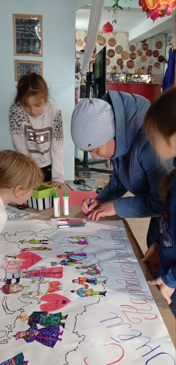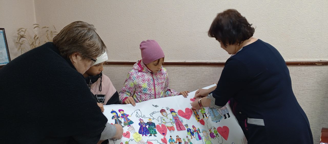 Суть акции заключалась в следующем: каждый участник мог вырезать из бумаги сердечко, написать на нём своё имя и приклеить его на большую карту России. Этот простой, но очень символичный жест отразил сплочённость народов, населяющих нашу страну. Сердечки, словно лучи тепла и добра, постепенно заполняли контуры России, олицетворяя неразрывную связь между людьми разных национальностей.
