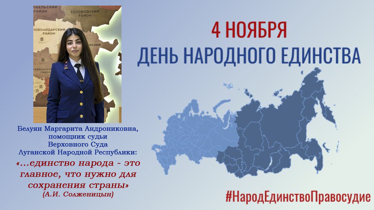 Верховный Суд Луганской Народной Республики присоединяется к патриотической онлайн акции «#НародЕдинствоПравосудие», приуроченной ко Дню народного единства, организованной Пятым апелляционным судом общей юрисдикции.