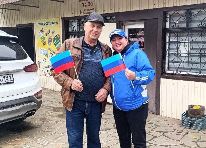 На центральной улице посёлка среди жителей и гостей Крепенского, каждому желающему вручали триколоры Российской Федерации и Луганской Народной Республики, олицетворяющие историческое прошлое, настоящее и будущее великой страны.