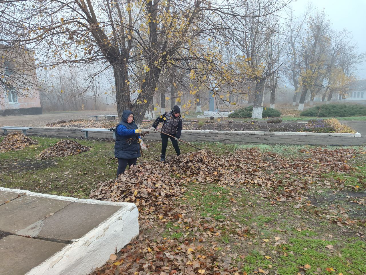 В ходе мероприятия была убрана опавшая листва у здания отдела жизнеобеспечения, возле ФАПа на улице Карла Маркса, а также вокруг памятников на площади у филиала №2 ДК им. Петровского и территории школы на улице Энгельса.