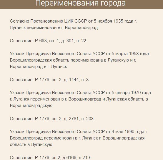 Итогом многолетней череды переименований стало окончательное возвращение исторического названия. 4 мая 1990г. городу было возвращено имя Луганск.