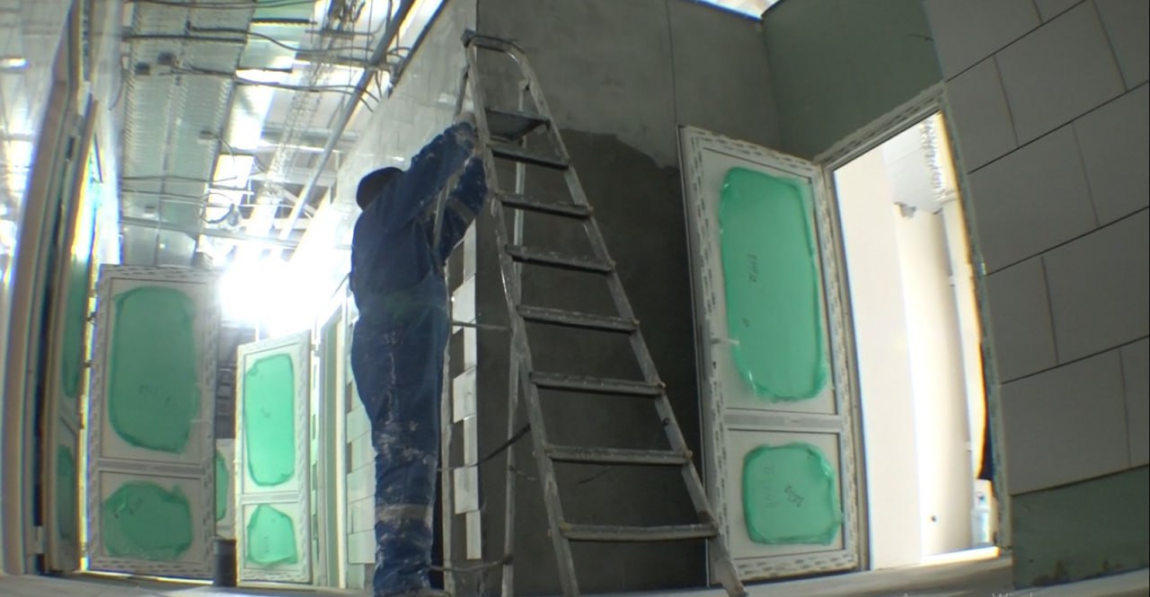«Плитка готова процентов на 85. Даже на 90. В ноябре мы её завершим. Кроме того на ноябрь запланировано завершить вентиляцию, слаботочную систему. Приступить к покраске стен. Всё идёт по графику»