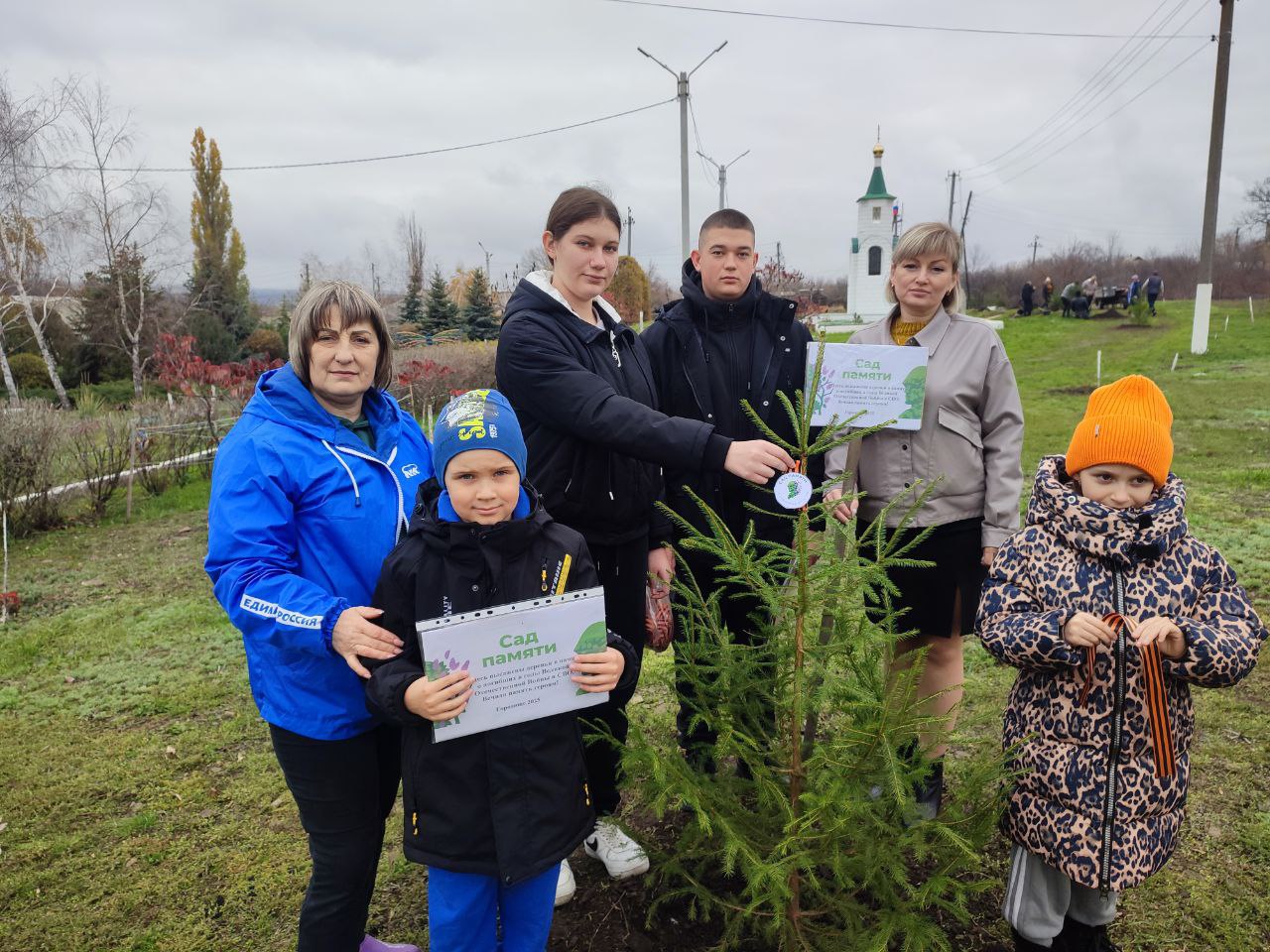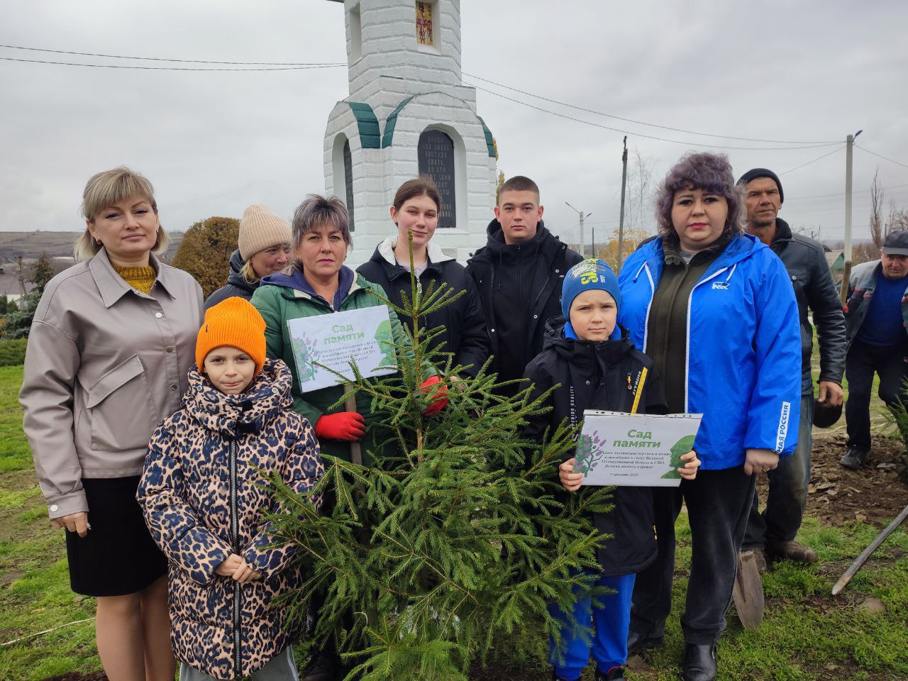 Саженцы были высажены на территории, прилегающей к могилам погибших участников СВО, в сквере по ул. Ленина, возле Братской могилы советских воинов, а также была разбита аллея «Сад Памяти» в центре поселка возле Памятного знака 7-му Гвардейскому корпусу и Памятного знака «Икона Отечества».