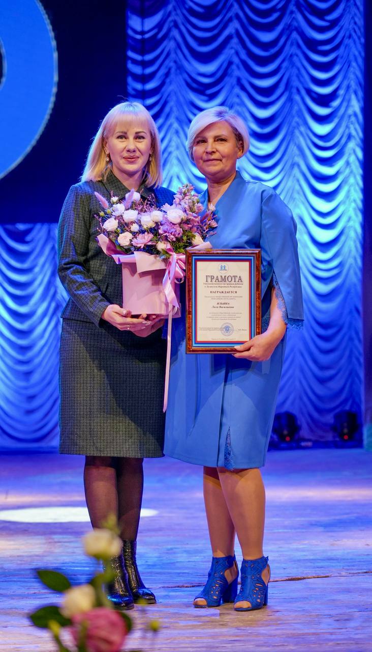 Вручила грамоту Уполномоченного по правам ребенка в Луганской Народной Республике Председателю Общественной организации «Путь добра» Лилии Ильиной.
