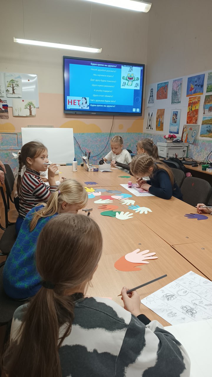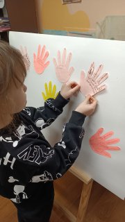 Поиграли в игру «да» или «нет», проработали проблемные ситуации, создали коллективное панно из цветных ладошек «Мы открыты для дружбы!». Каждый написал, какими качествами должен обладать настоящий друг.