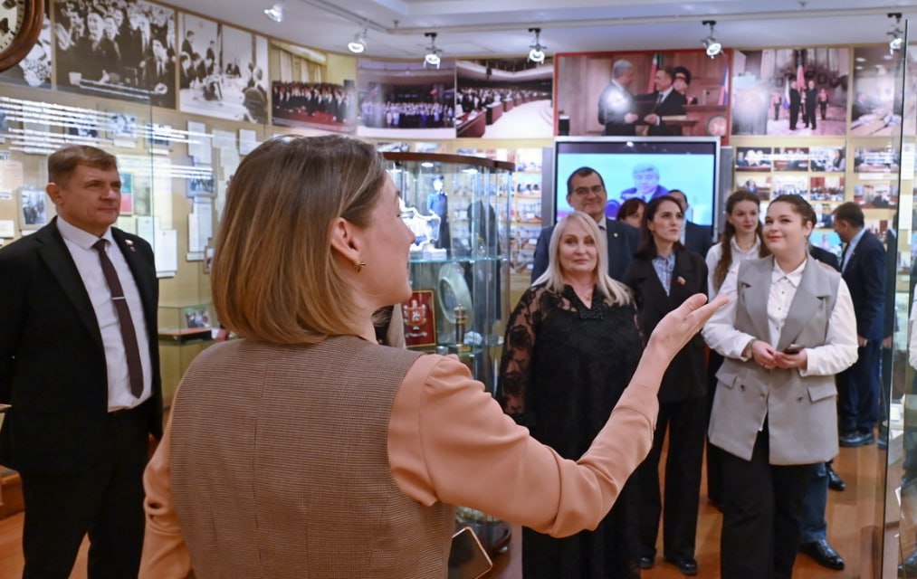 Визит начался с обзорной экскурсии по зданию Госсовета, во время которой представителям жителей Луганской Народной Республики рассказали об истории парламентаризма, о первом Президенте Татарстана, участники узнали о архитектурных особенностях этого важного объекта республиканского значения.