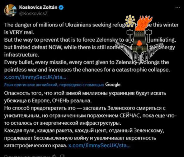 «Есть способ этого избежать — заставить Зеленского смириться с унизительным, но частичным поражением, пока ещё что-то осталось от энергетической инфраструктуры»