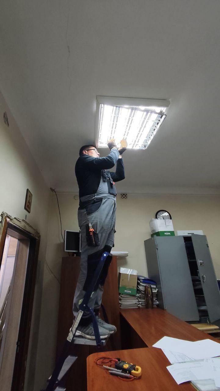 Специалисты аварийной бригады из Удмуртии оперативно устранили повреждение электросети в административном здании города Лутугино. В ходе работ был ликвидирован обрыв электроцепи и заменены сгоревшие потолочные светильники.