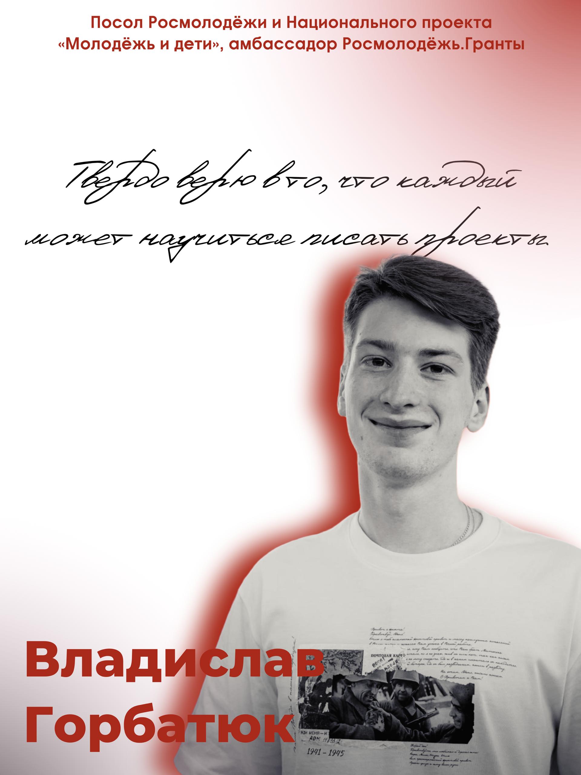 Посол Росмолодёжи и Национального проекта «Молодёжь и дети», лучший выпускник форумов Росмолодёжи, основатель бренда одежды «Роднить», амбассадор Росмолодёжь.Гранты и просто хороший парень.