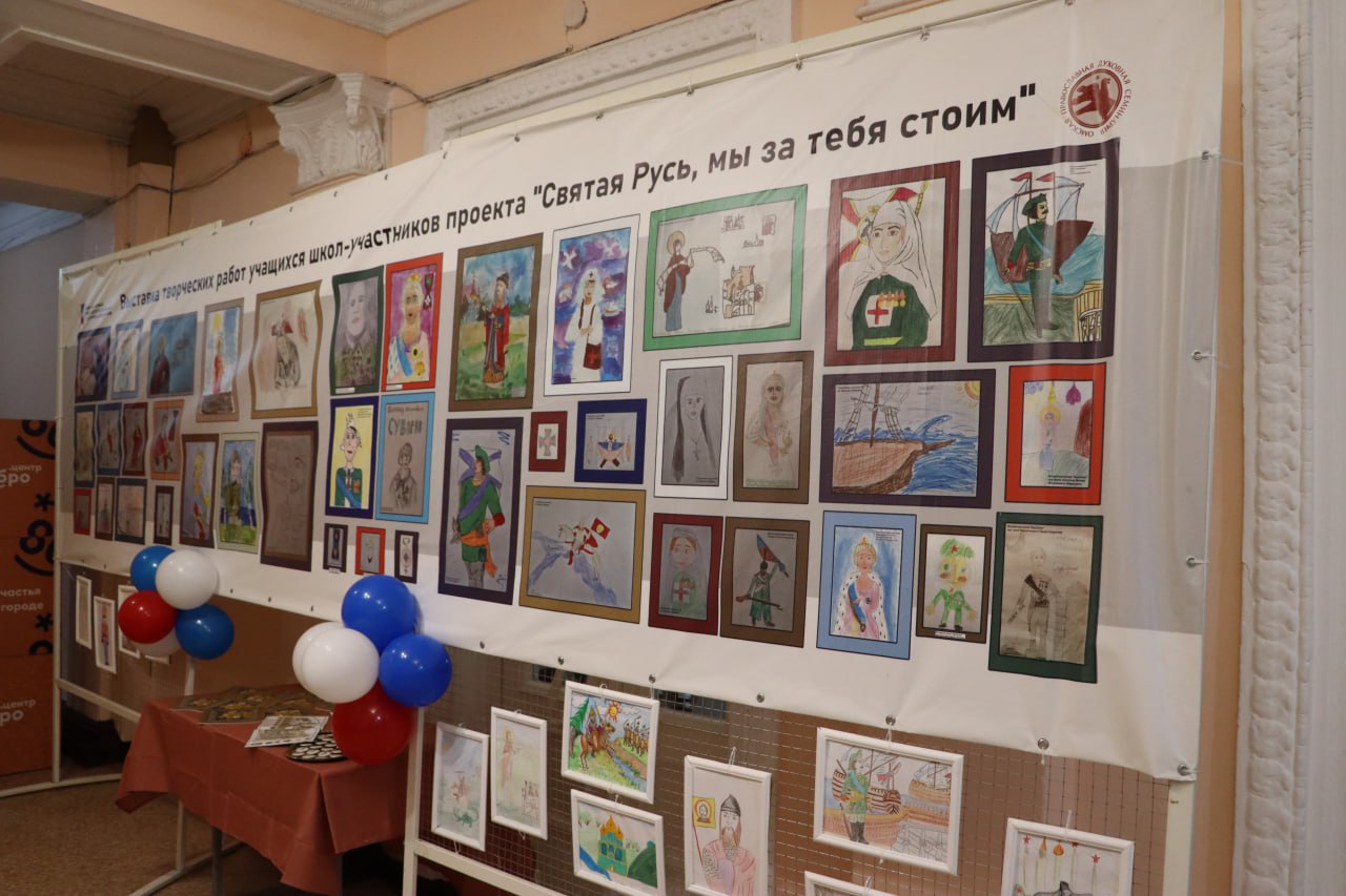 На экспозиции представлены работы учащихся Стахановской гимназии № 11 имени Кирилла и Мефодия и воспитанников воскресной школы при Омской духовной семинарии. Выставка стала результатом совместного проекта «Святая Русь, мы за тебя стоим», реализуемого при поддержке Президентского фонда культурных инициатив.