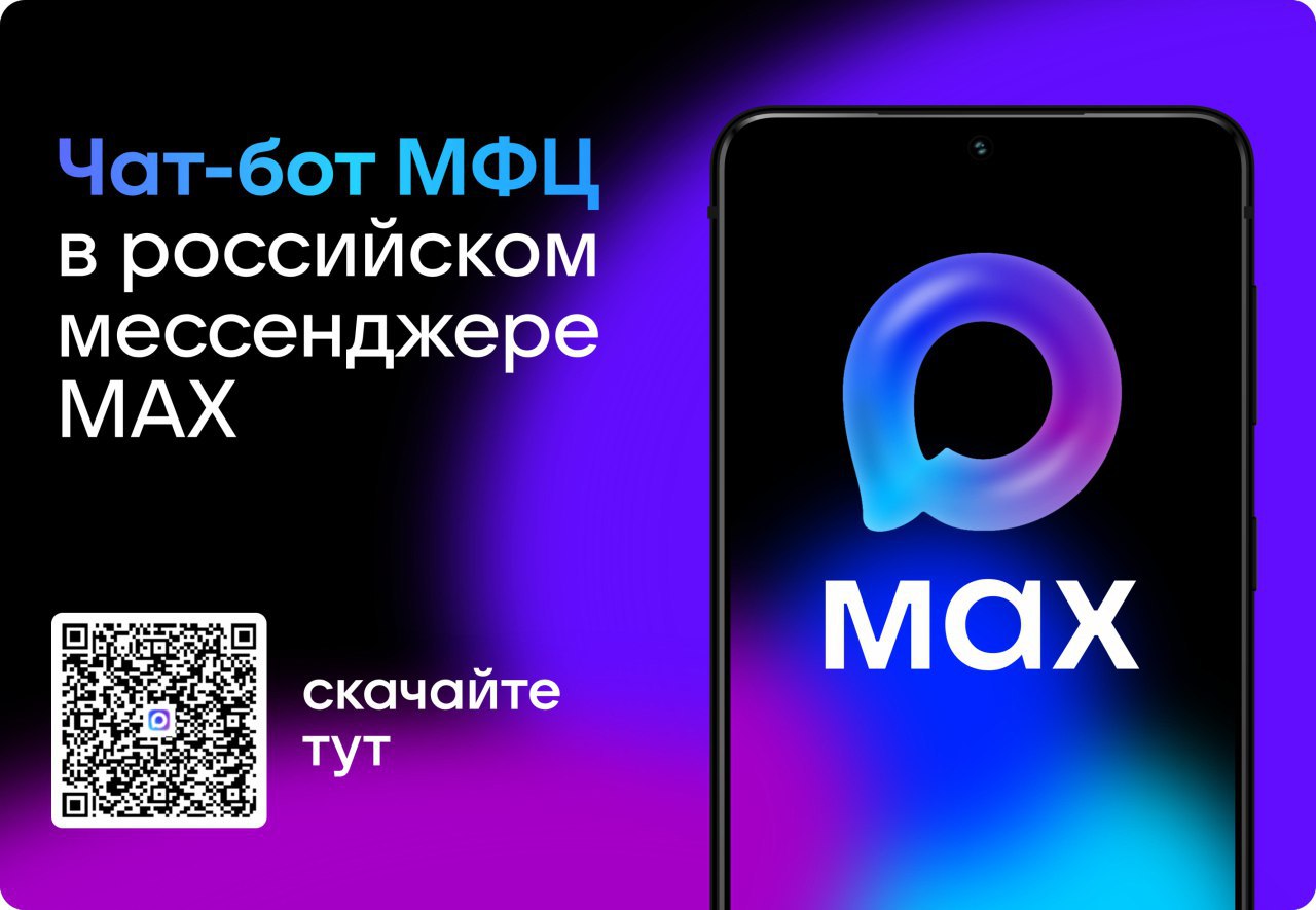 Чтобы приступить к работе с ботом, вам потребуется скачать приложение мессенджера «МАХ» на смартфон и считать QR-код либо в поиске найти группу Чат-бот ГБУ ЛНР «МФЦ».