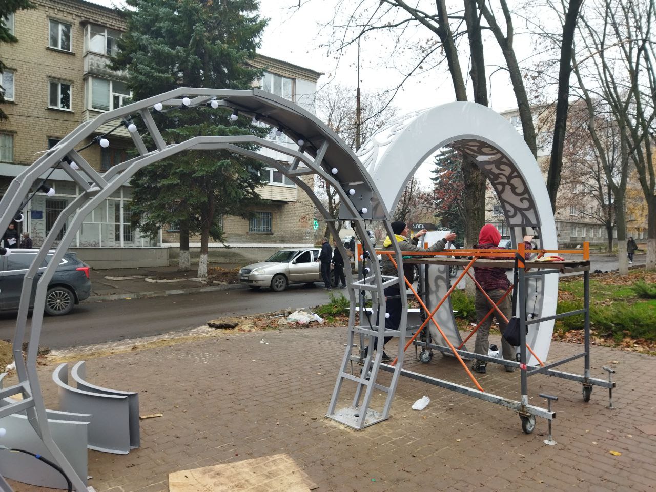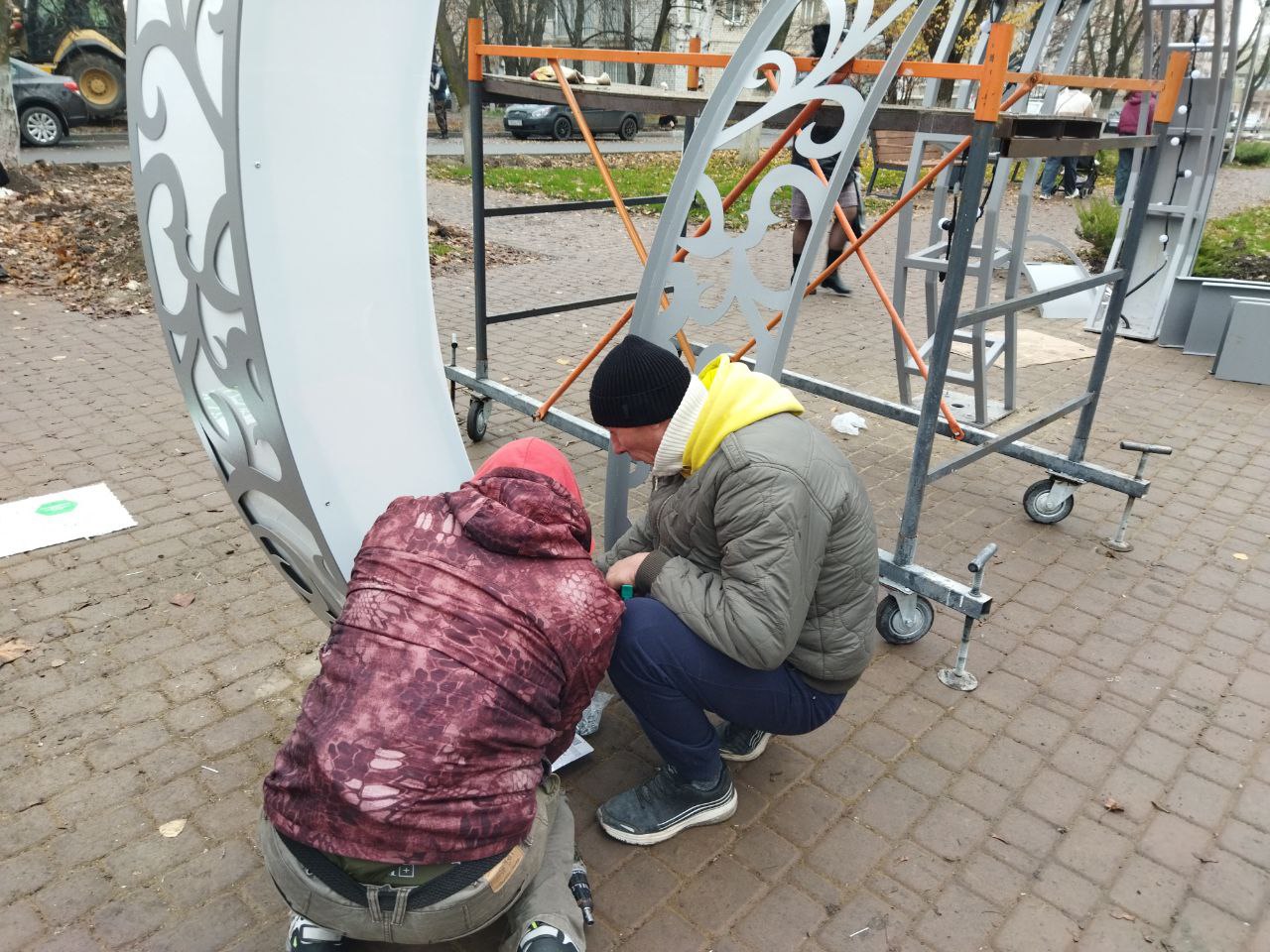 На сегодняшний день подрядной организацией выполняются работы по установке инсталляции в виде 2-х обручальных колец.