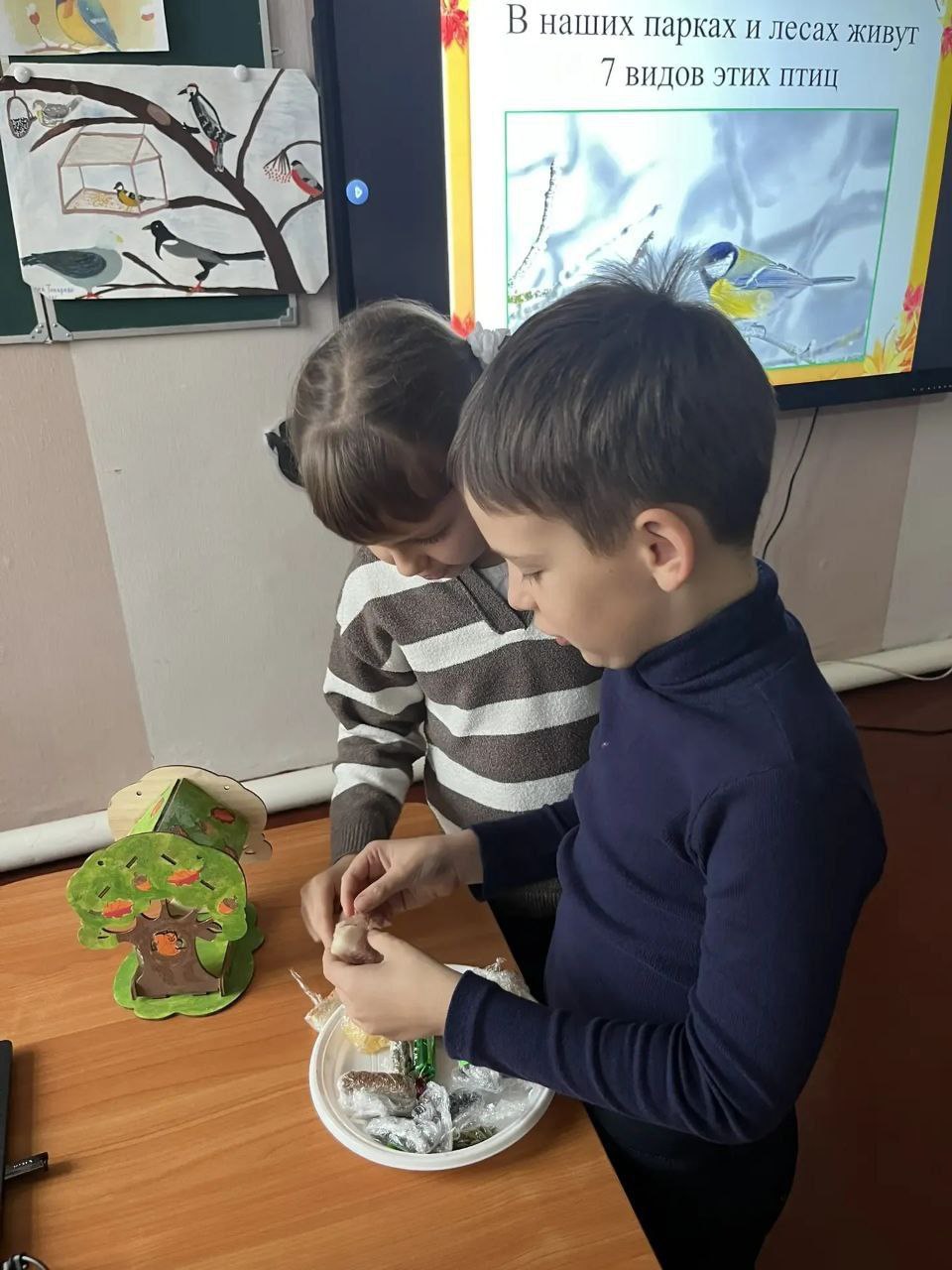 Шестиклассники рассказали младшим товарищам о зимующих птицах нашего края. Ребята узнали много интересного о повадках и особенностях синиц. Мы вместе изучили, чем можно и чем нельзя подкармливать пернатых зимой.