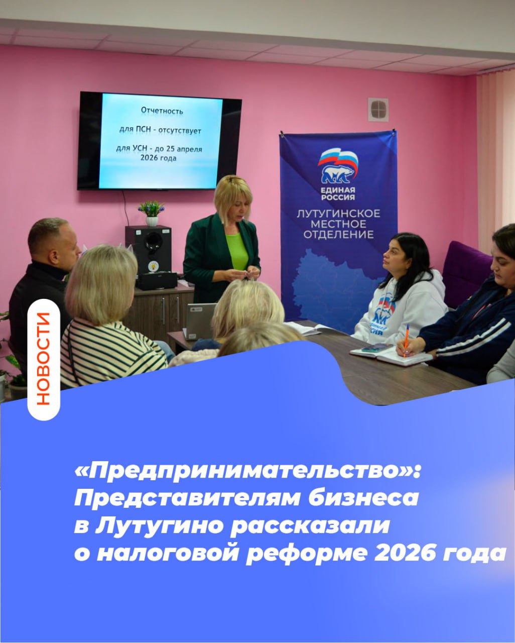 В рамках партпроекта «Предпринимательство» «Единой России» в Лутугино состоялся открытый семинар, посвящённый предстоящим изменениям в налоговом законодательстве — налоговой реформе 2026 года. Мероприятие собрало предпринимателей малого и среднего бизнеса для обмена вопросами и практическими рекомендациями.