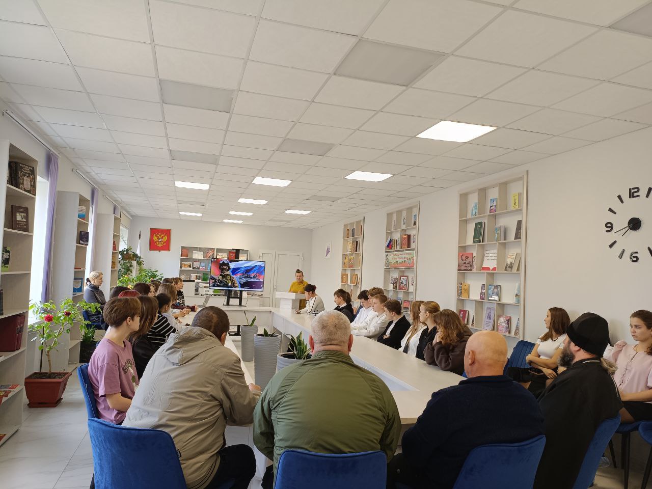 В стенах, пропитанных эхом минувших лет, в тиши центральной библиотеки им. Г. Сковороды развернулась встреча, сотканная из мужества и надежды. Учащиеся девятого класса Ровеньковской гимназии №1 имени им. Г.С. Шонина прикоснулись к пульсирующей истории, лицом к лицу встретившись с участниками специальной военной операции: Павленко И.К., Гусарчуком И.А., Шейко О.С., Бовкуном А.А., Плахоткиным В.В., с представителем ровеньковской епархии отцом Павлом Туровским.