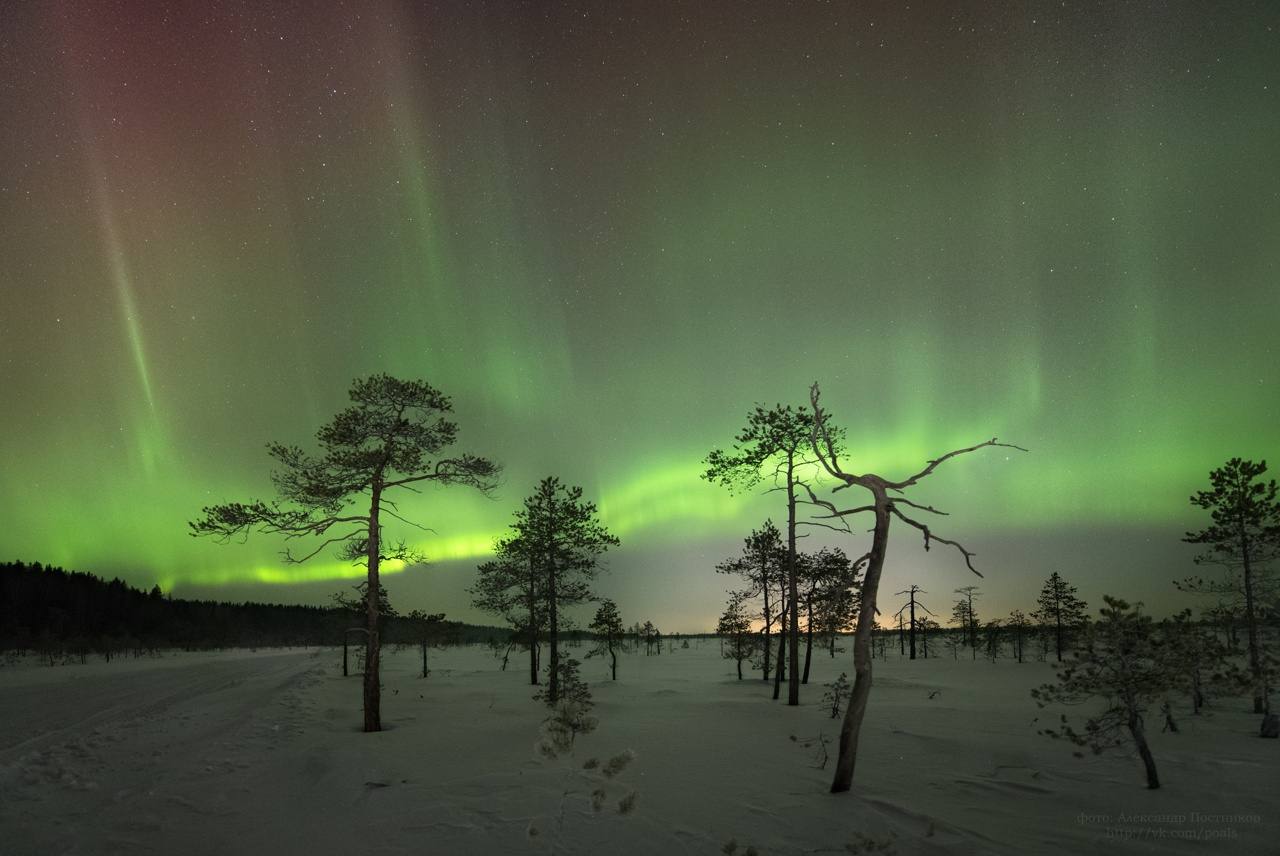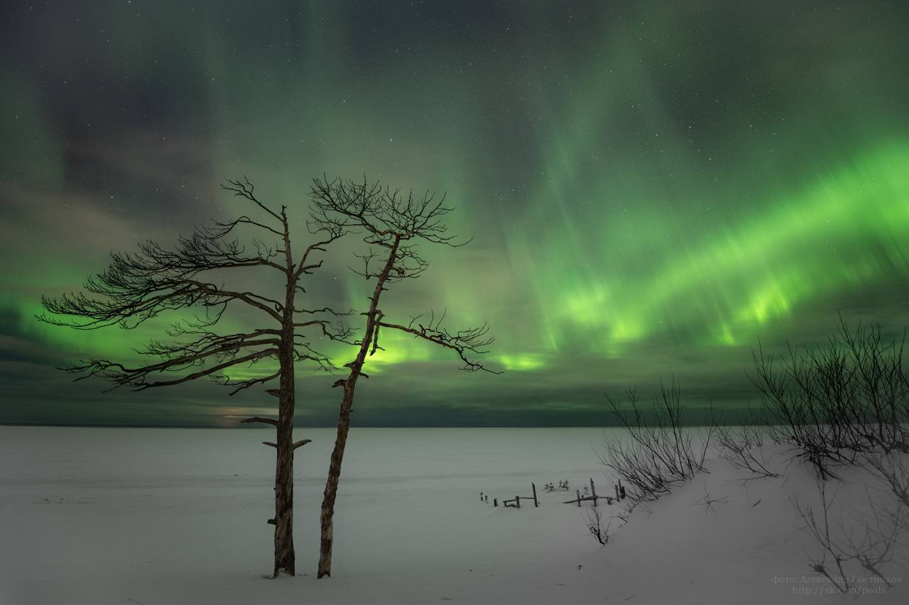 Северное сияние на берегу Белого моря