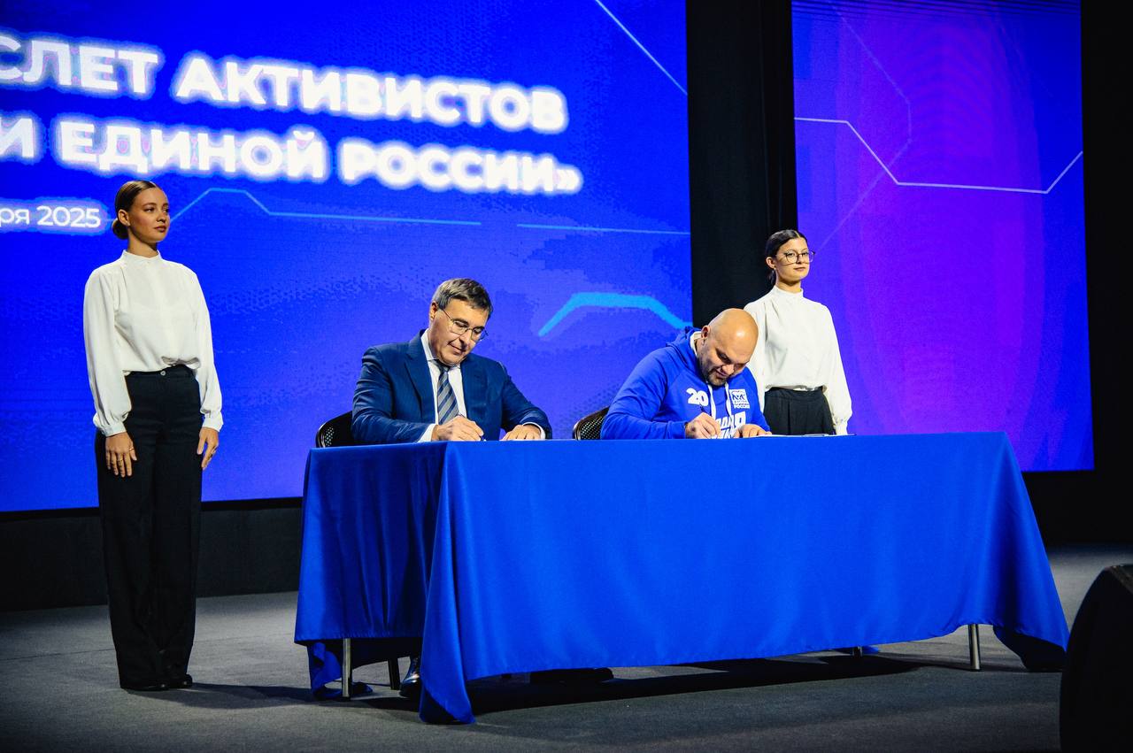Министр науки и высшего образования Российской Федерации Валерий Фальков и Председатель Молодой Гвардии Антон Демидов на Всероссийском слете Молодой Гвардии подписали соглашение о сотрудничестве