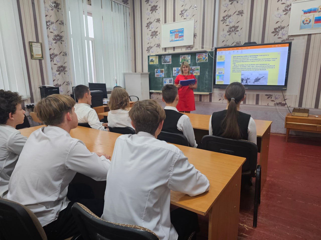 Классный руководитель 9-А класса Курпан Ирина рассказала обучающимся об истории этого дня и познакомила с особенностями развития ракетных войск и артиллерии нашей страны.