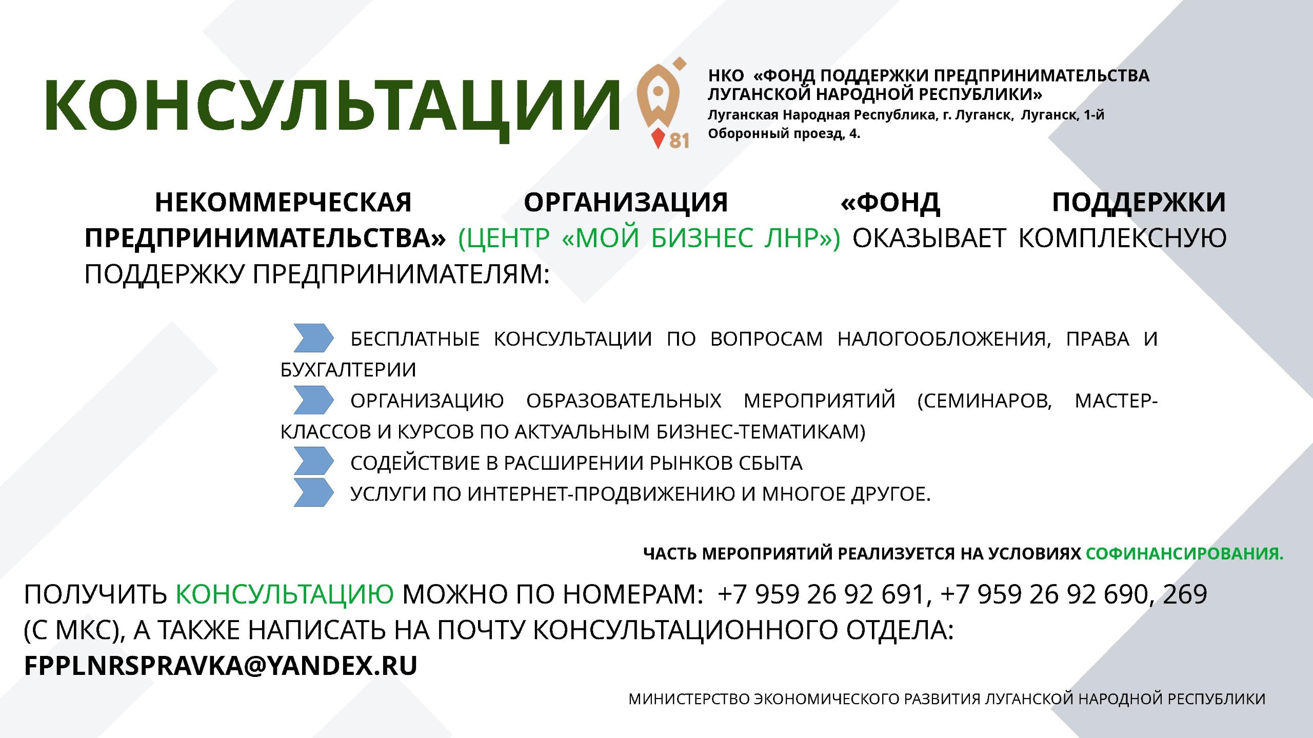Информация для субъектов малого и среднего предпринимательства о действующих мерах поддержки на территории Луганской Народной Республики