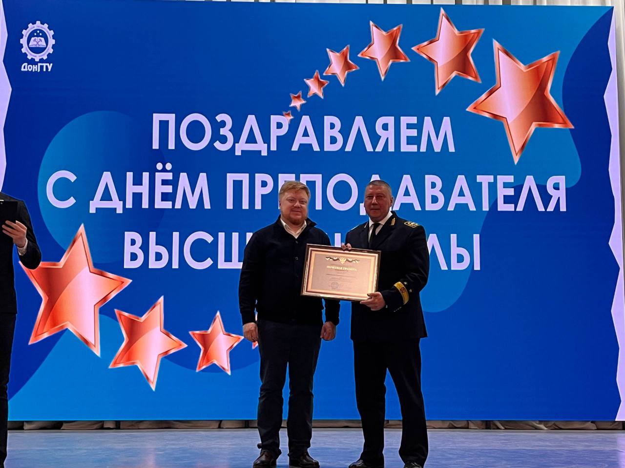 Пожелал коллегам здоровья и продуктивной работы, а также вручил почетные грамоты Минобрнауки РФ коллективу вуза и ректору Дмитрию Александровичу Вишневскому!