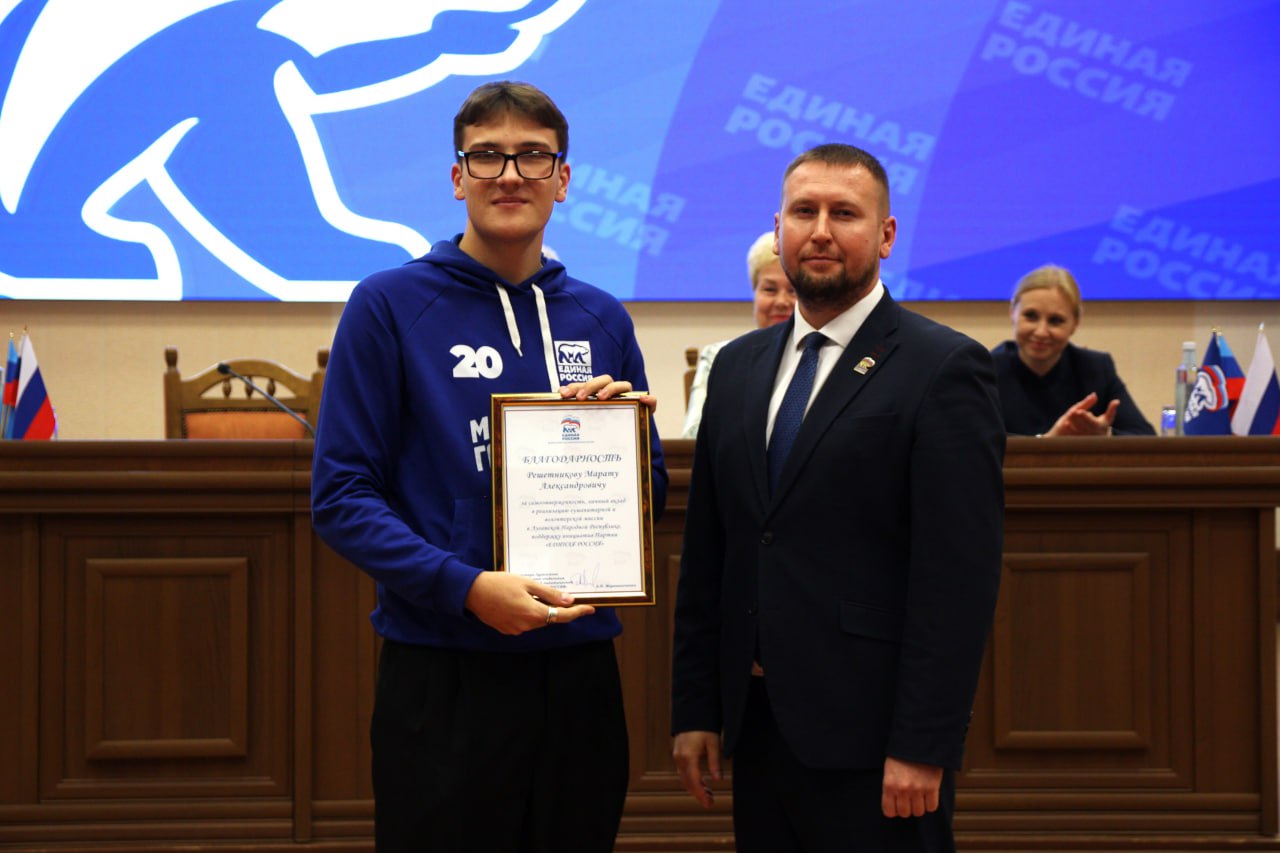 В ходе IV Конференции Луганского регионального отделения партии «Единая Россия» состоялось награждение волонтёров. Все десять награждённых являются активистами «Молодой гвардии Единой России» и активно помогают в тушении лесных пожаров, разборе завалов после обстрелов со стороны ВСУ, доставке гуманитарной помощи населению. Вручил благодарности секретарь Луганского реготделения партии Денис Мирошниченко.