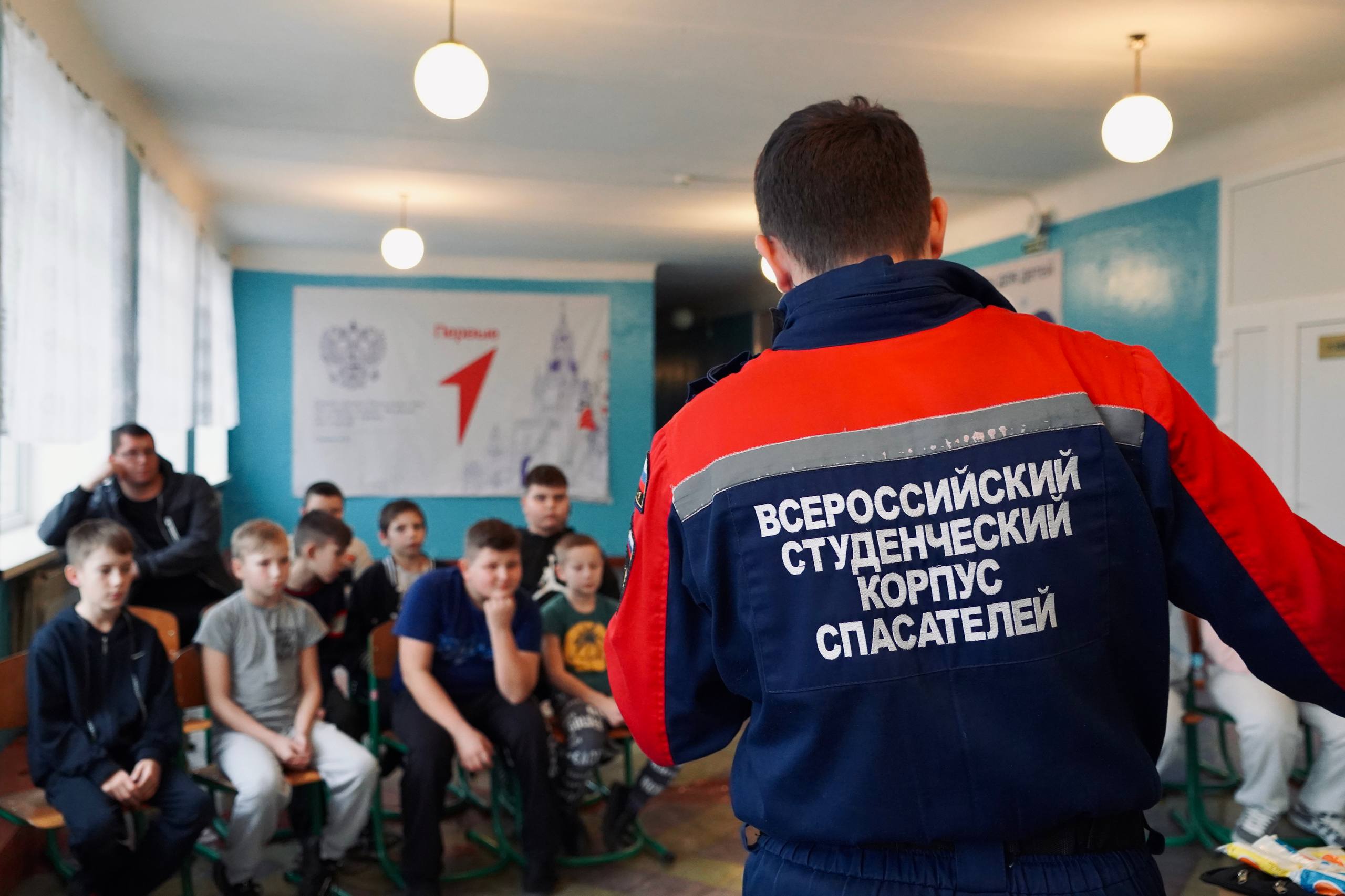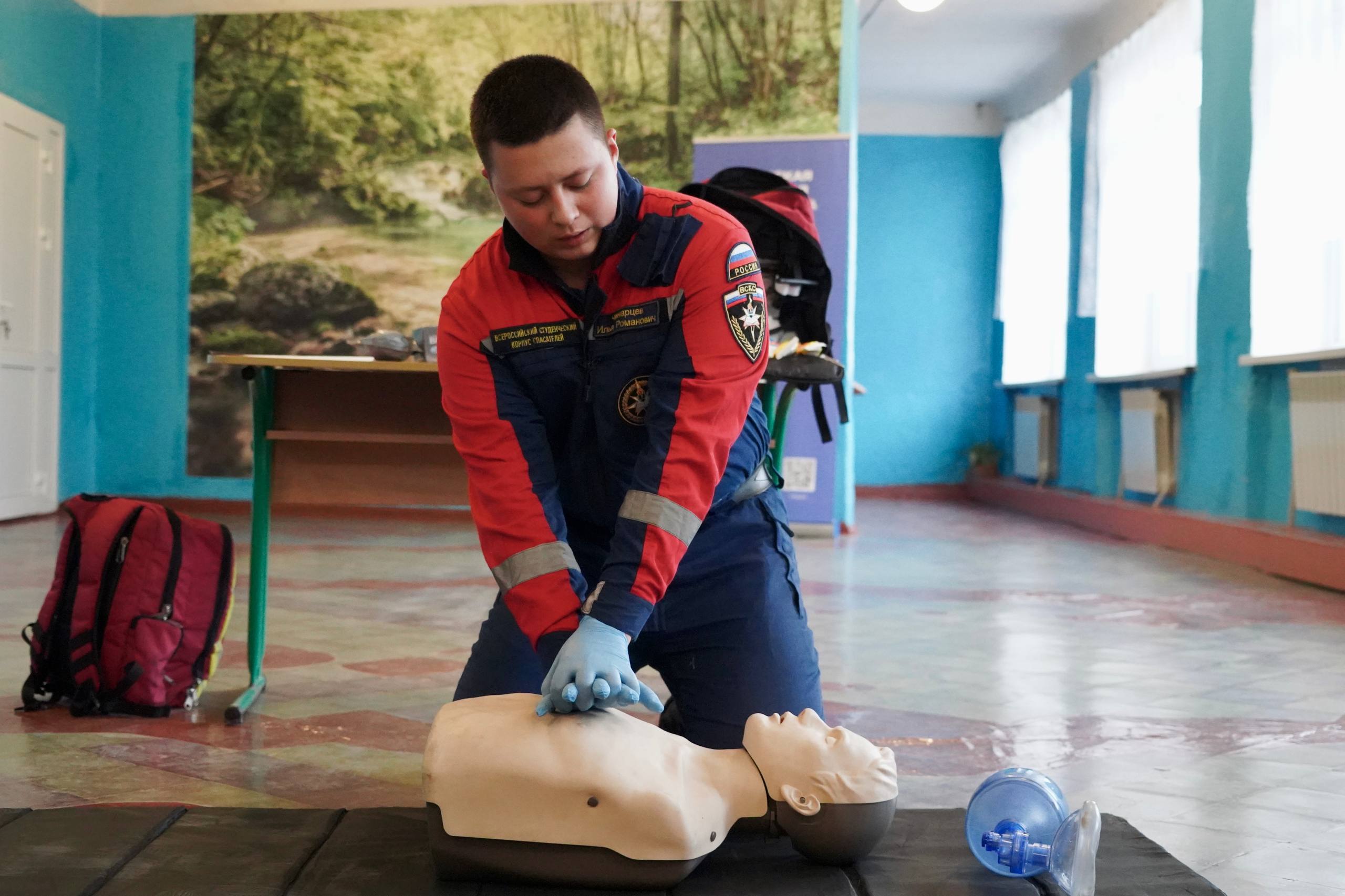 В рамках этой работы, инструкторы продолжают проводить интерактивные занятия в формате «Городка безопасности» для обучающихся «Станично-Луганской гимназии п. Широкий». На базе школы было организованно четыре площадки - основы оказания первой помощи, основы пожарной безопасности, альпинистская подготовка и работа с аварийно-спасательным инструментом.