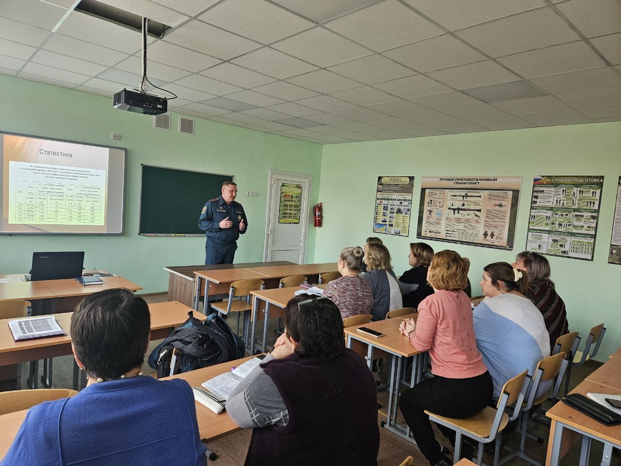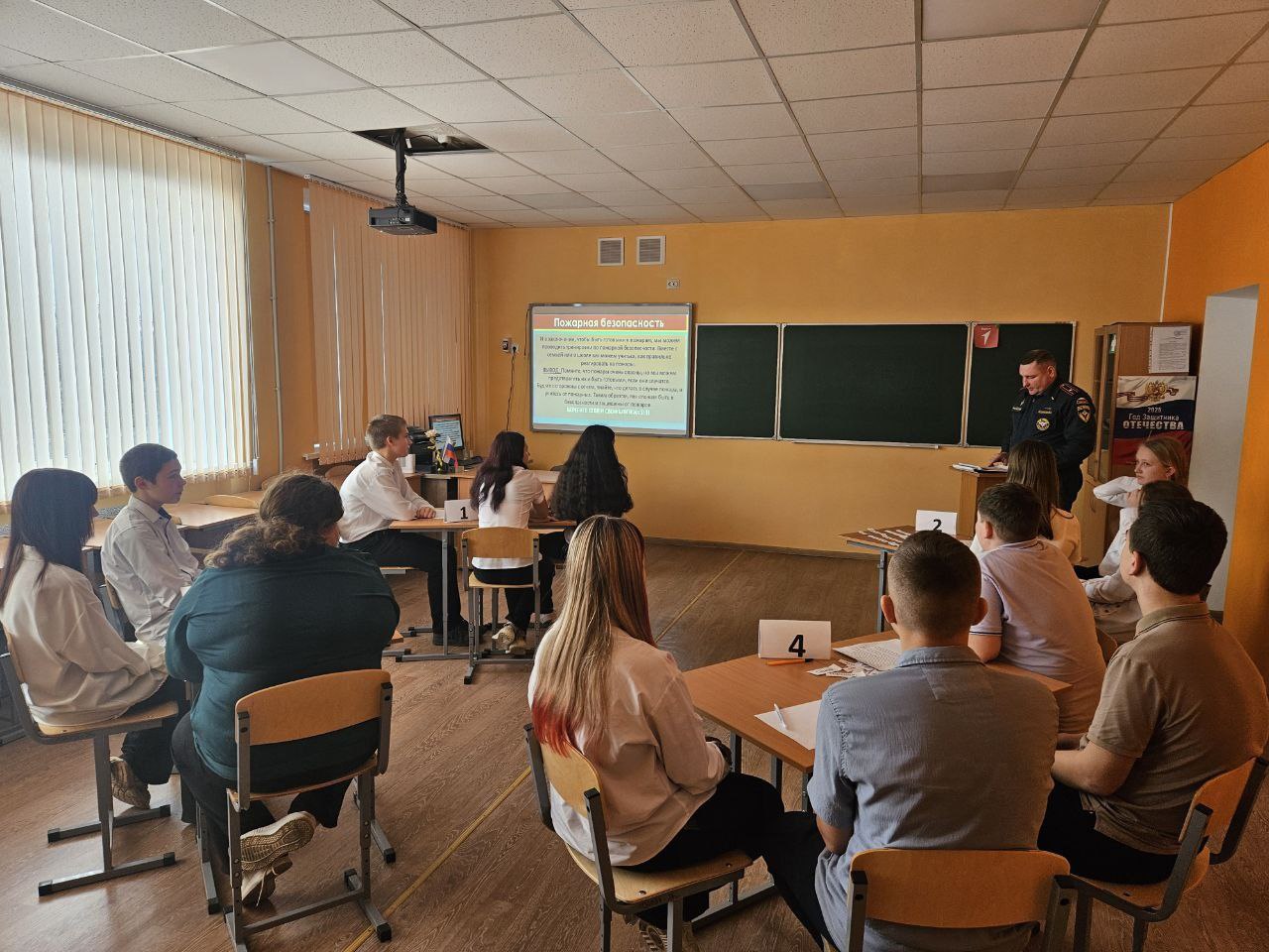 Сотрудник противопожарной безопасности МЧС провел беседу для учеников, а так же рабочего коллектива данной школы, на тему «Пожарная безопасность».