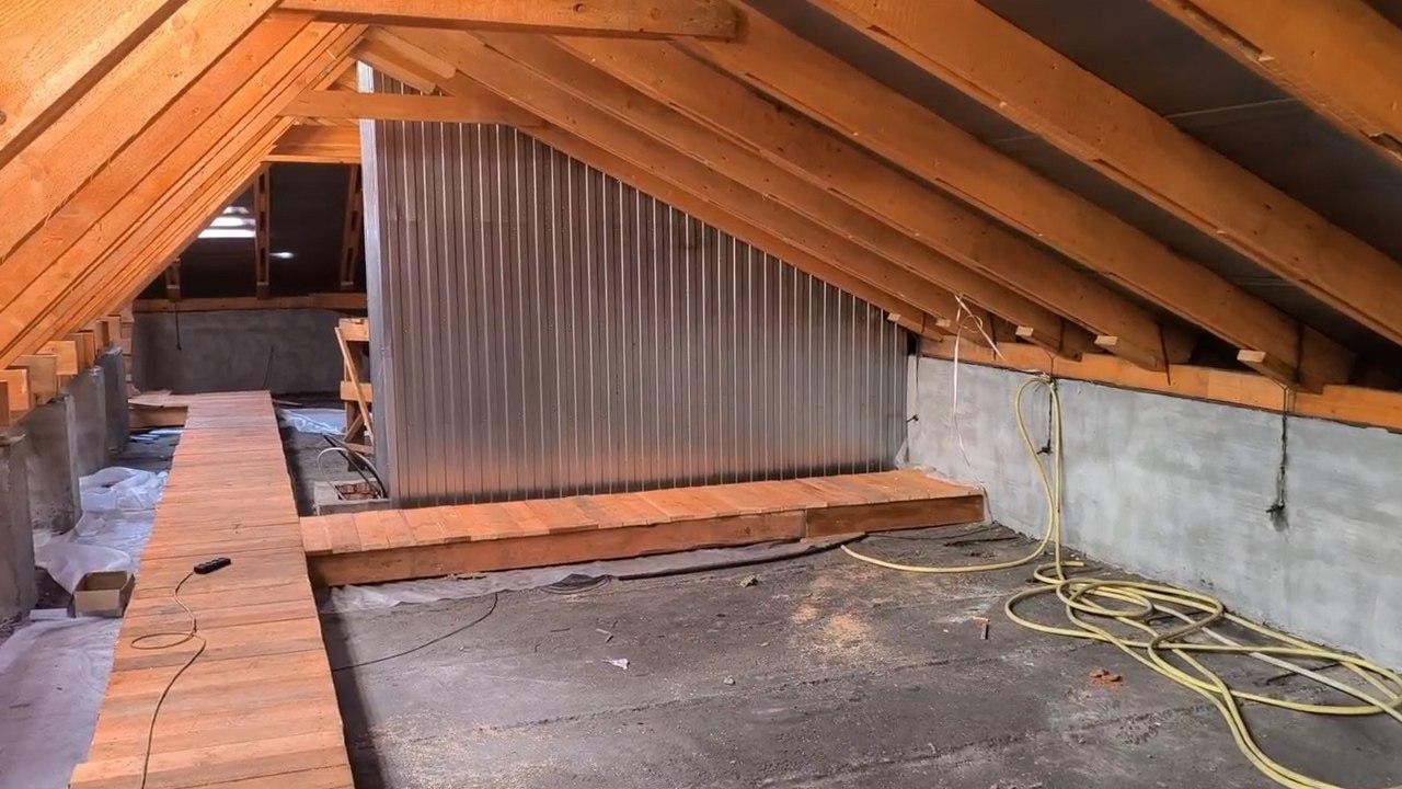 Процесс ремонта начался с демонтажа старой кровли, после чего была возведена новая стропильная система. В ходе работ было вывезено около 60 кубов строительного мусора. Для удобства и безопасности демонтажа использовался кран с рукавом, что значительно упростило задачу по спуску мусора.
