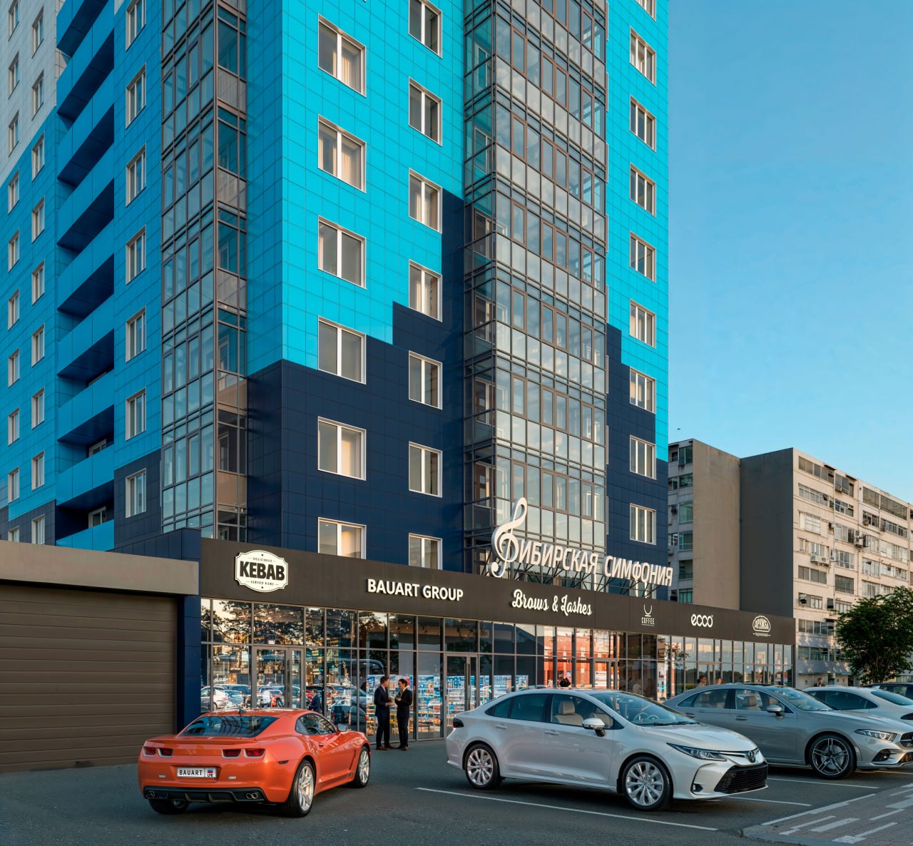 Общая площадь 19-этажного дома составит почти 11 тыс м2. Там будет 136 квартир, на первом этаже — коммерческая недвижимость. У дома — детская площадка.
