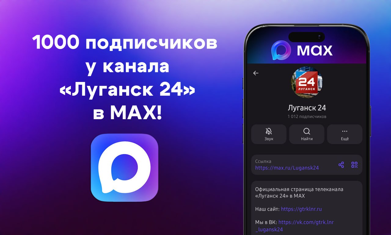 Канал «Луганск 24» в национальном мессенджере МАХ преодолел отметку в 1000 подписчиков!