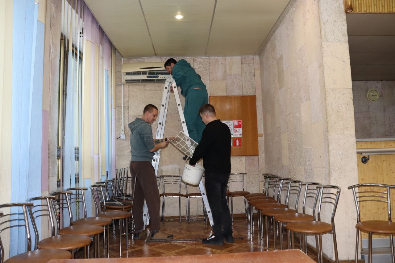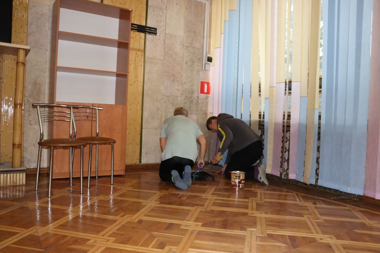 Сейчас в помещении кипит работа! Освобождается и расширяется пространство для будущего оборудования, проводятся ремонтные работы: обновляется паркет, красятся и утепляются окна, меняется электропроводка, проводится профилактика сплит-систем. Устанавливается новое интерьерное освещение, чтобы создать уютную атмосферу.