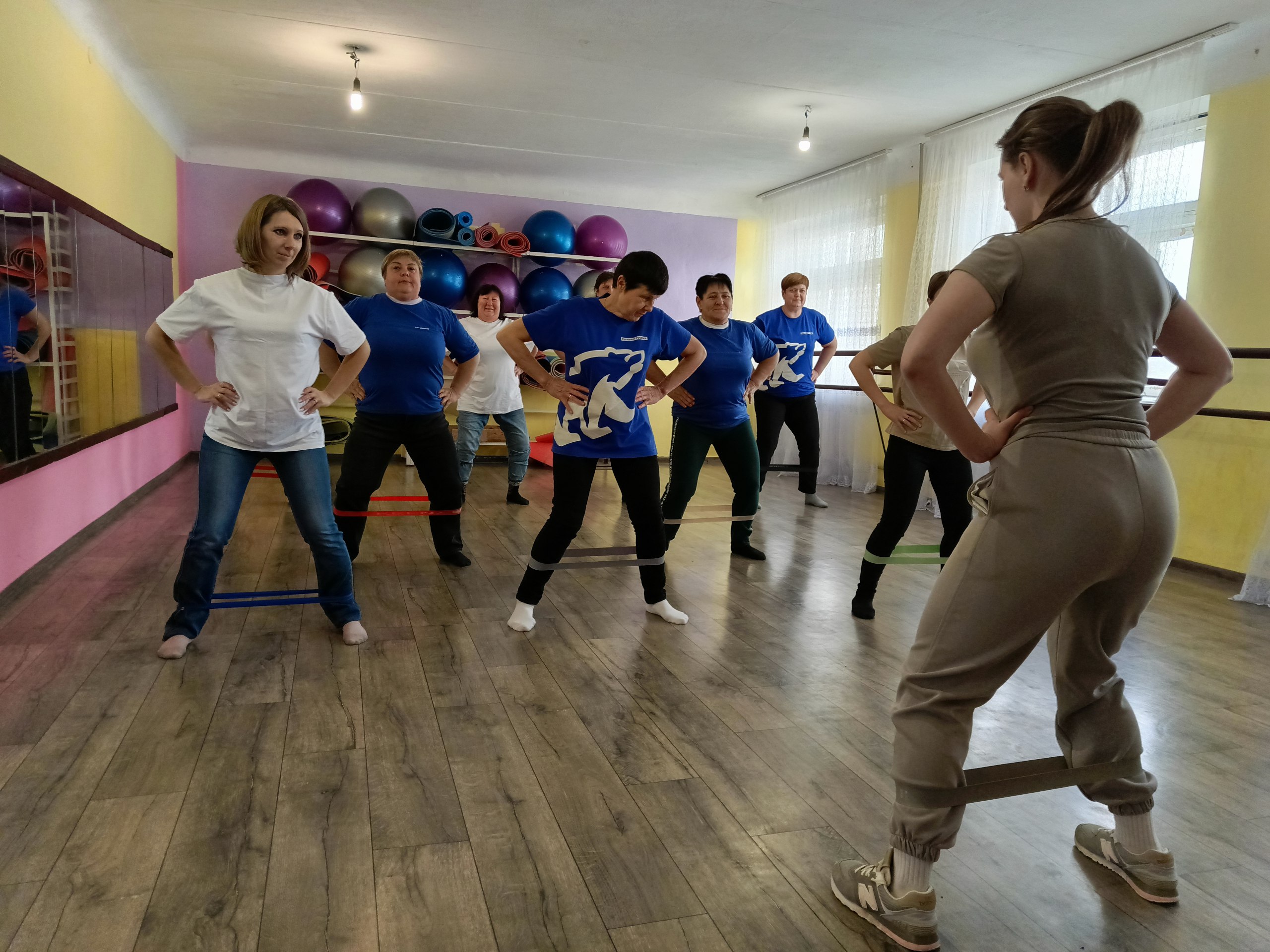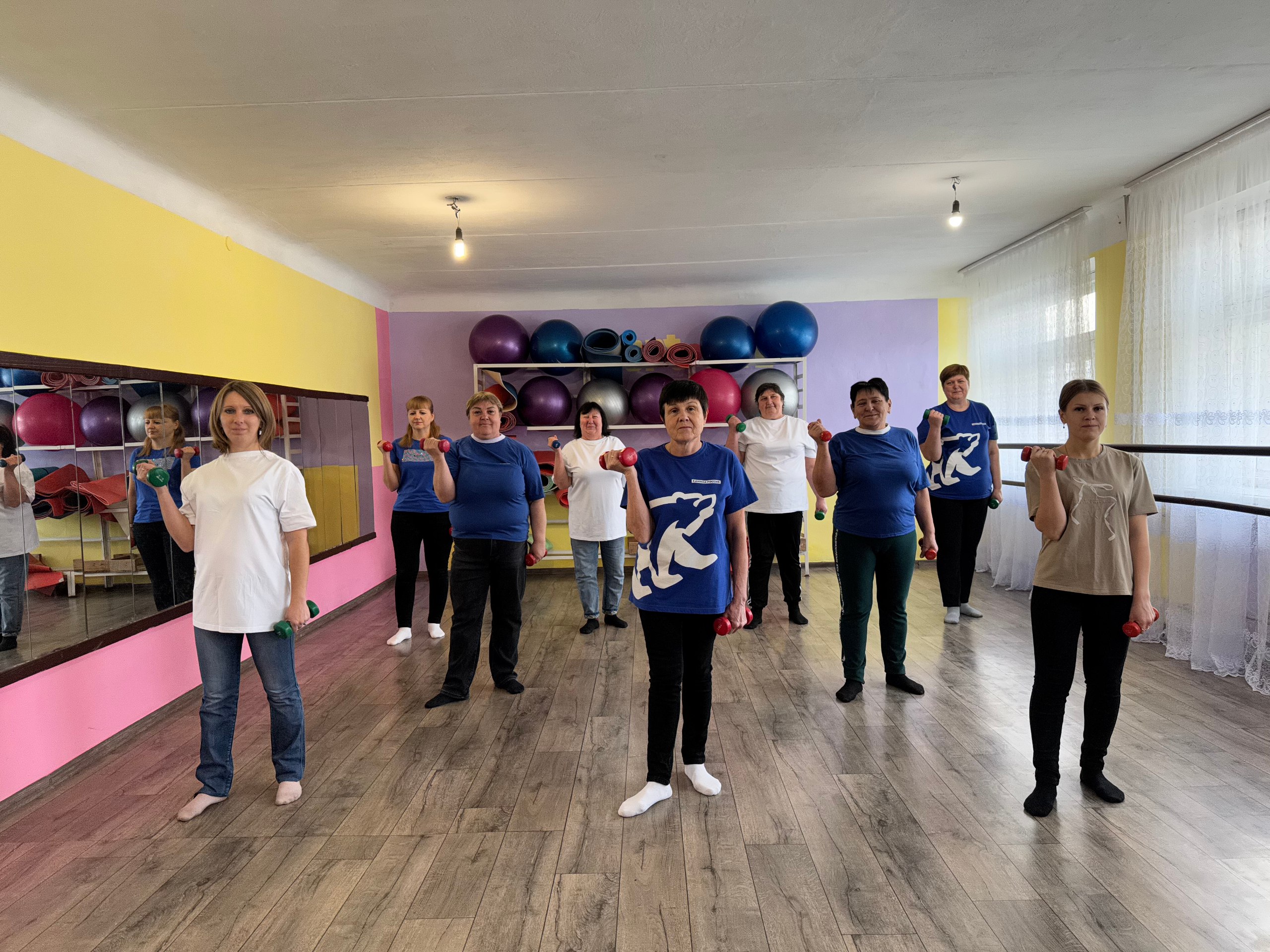 Программа была составлена с учетом возрастных особенностей. В ходе занятия, под ритмичную музыку, участники выполнили дыхательную гимнастику и упражнения со спортивным инвентарём, которые способствуют повышению тонуса и социальной активности.