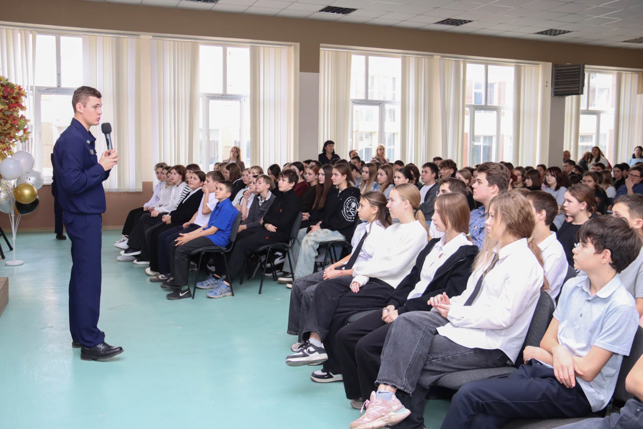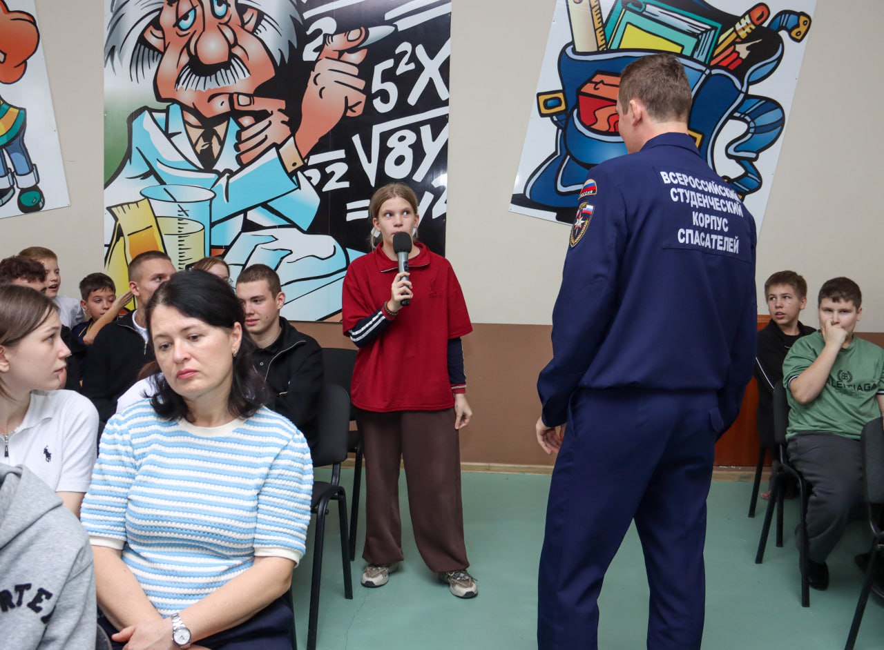 Одним из спикеров на такой встрече стал доброволец Всероссийского студенческого корпуса спасателей Тимофей Семиколенов, который встретился с учениками ЛУВК № 50 имени А.В. Федорчука.