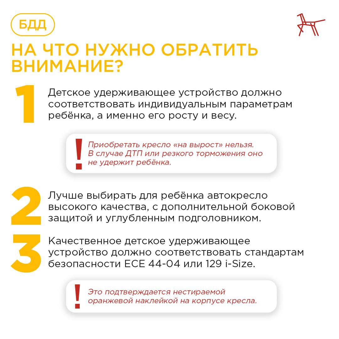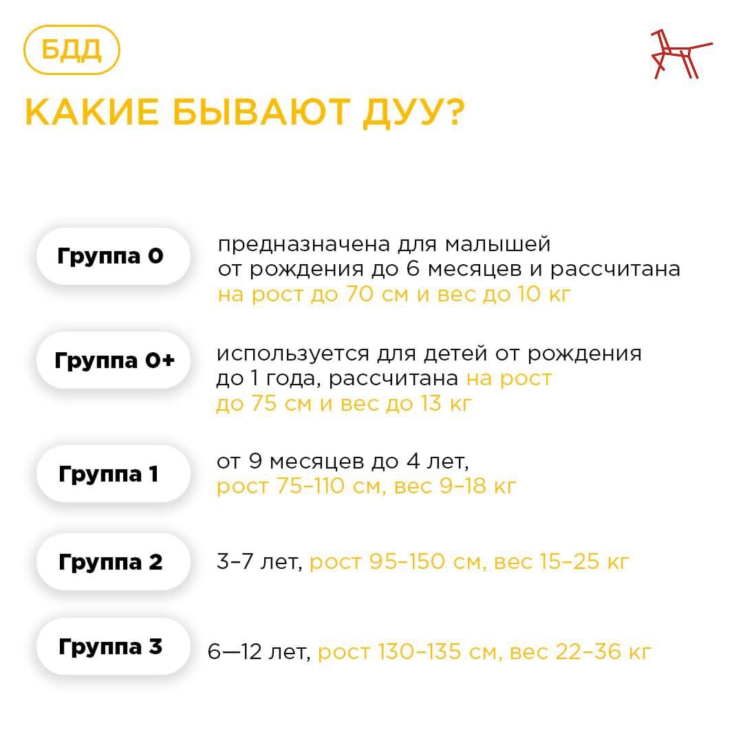Настоящее ДУУ – это автокресло. Оно должно быть сертифицировано по стандартам ECE 44-04 или i-Size, соответствовать весу и росту ребёнка, а до года – устанавливаться спиной вперёд.