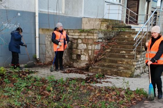 Аналогичные работы проведены и в сквере возле детской больницы, где территория была очищена от опавшей листвы и мусора.