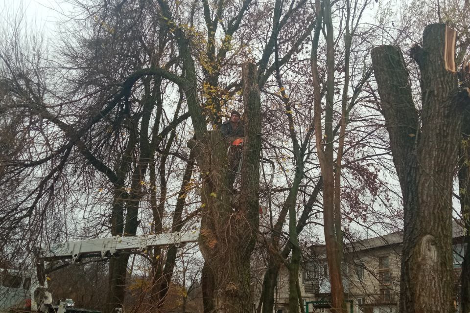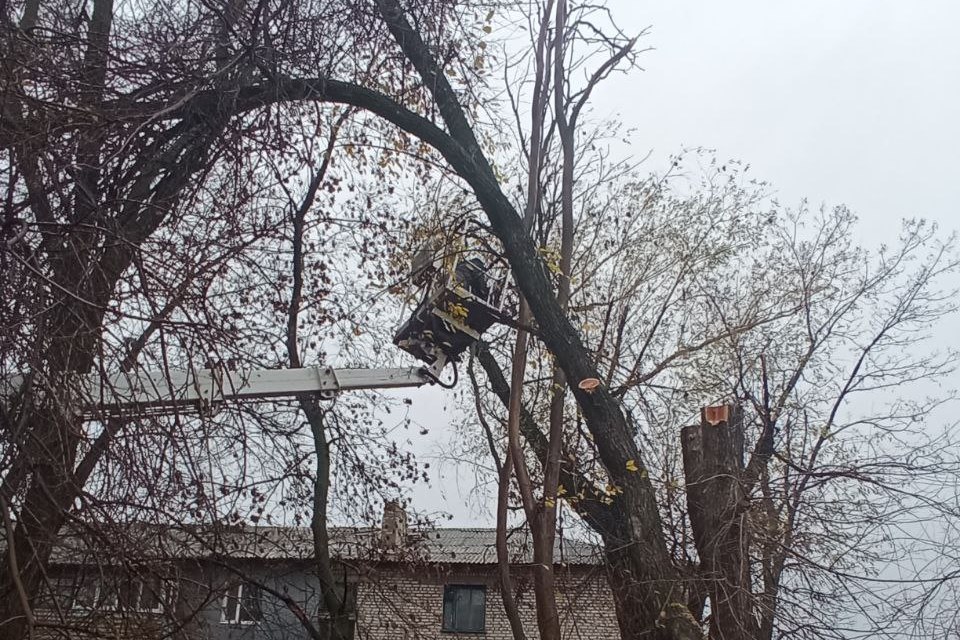В работах была задействована автовышка и два вальщика леса. Это позволило оперативно и безопасно спилить деревья.