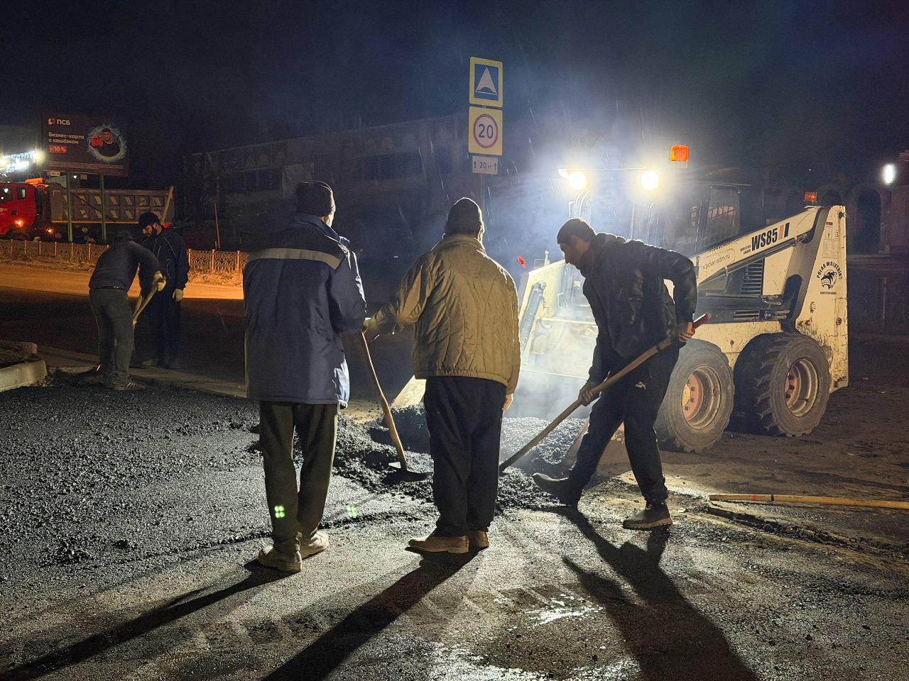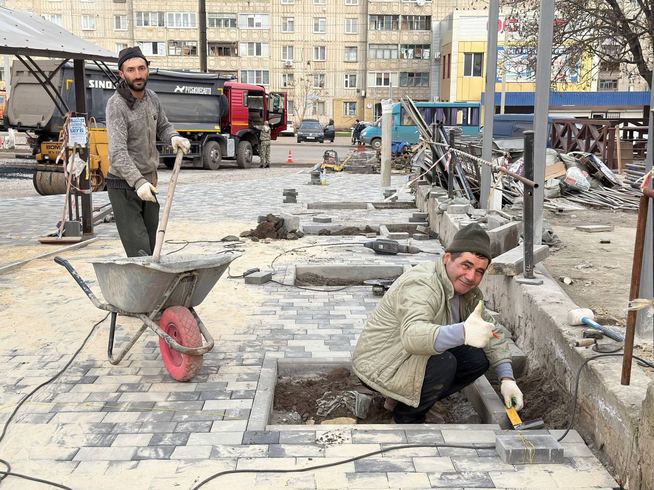Подрядная организация днем и ночью трудится над созданием комфортного пространства для горожан и гостей города, ожидающих транспорт на первомайском «Манеже».