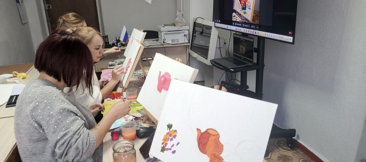 Педагоги-художники погрузились в мир красок и кистей, создавая живописную постановку. Это был ценный опыт обмена знаниями и техниками с коллегами из другого региона.