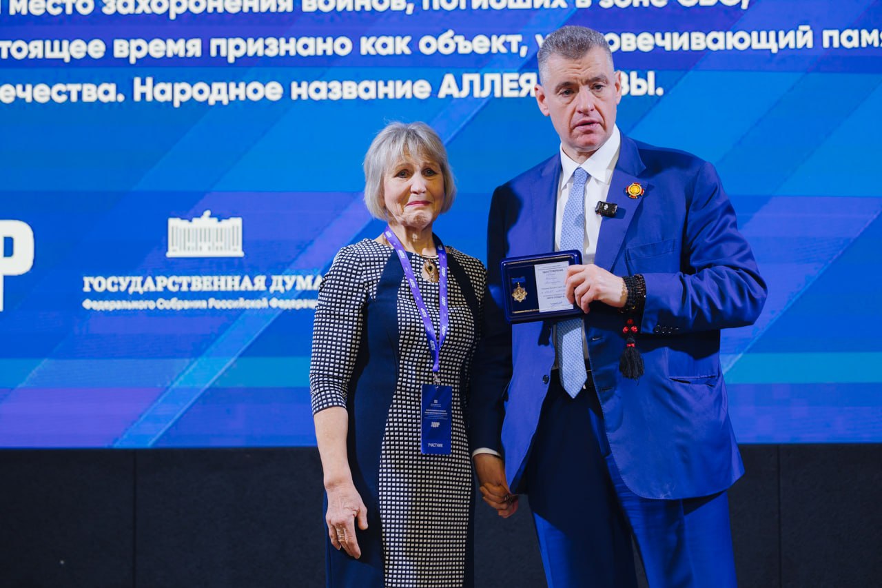Первые награды Леонид Слуцкий передал матерям, чьи сыновья погибли, выполняя свой долг. Эти женщины держатся с такой стойкостью, что словам порой тяжело дотянуться до глубины их боли и величия.