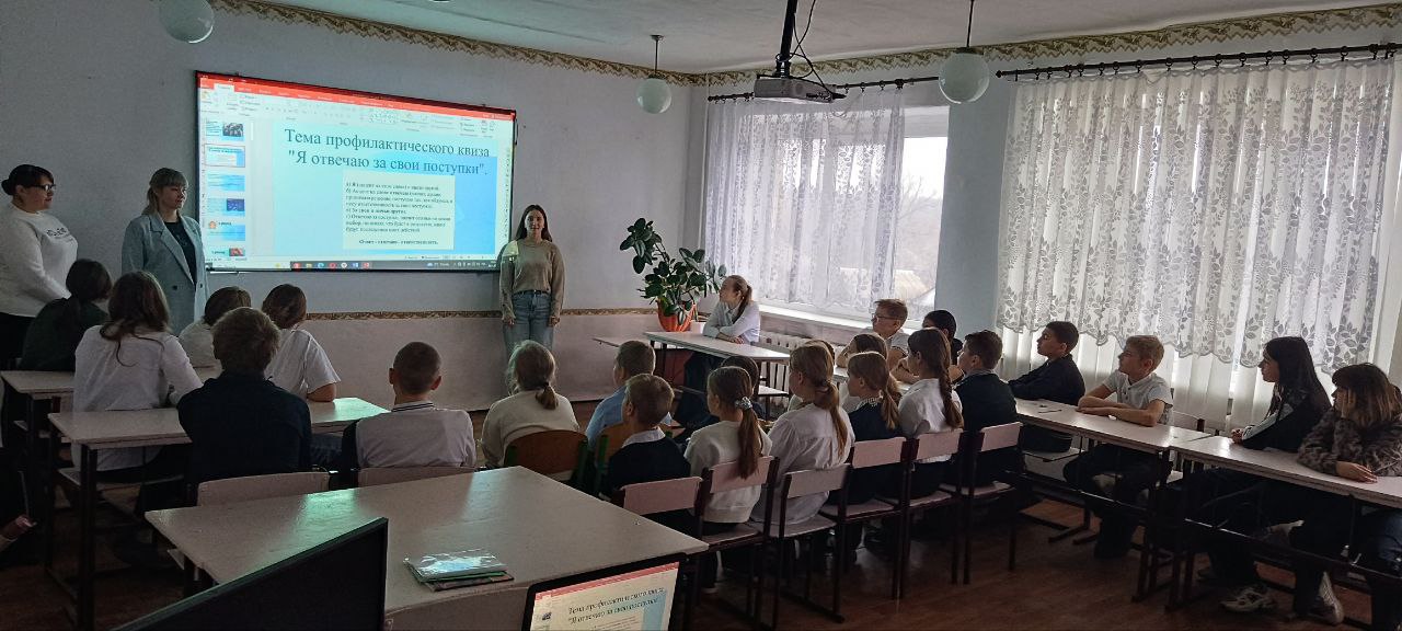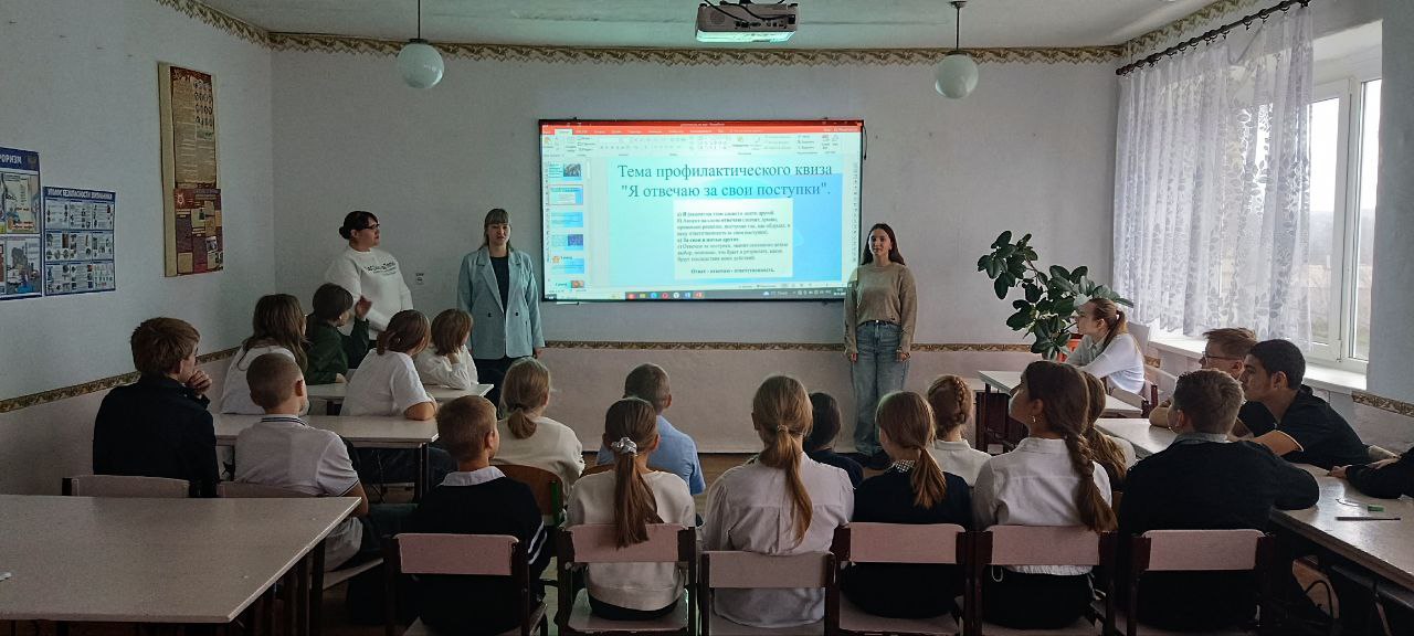 26 ноября 2025 года состоялась встреча специалистов отдела культуры, спорта и молодёжной политики и филиала № 6 «Семейный центр» с учащимися Нагольно-Тарасовского УВК им. В.Ф. Субботина на тему «Я отвечаю за свои поступки».