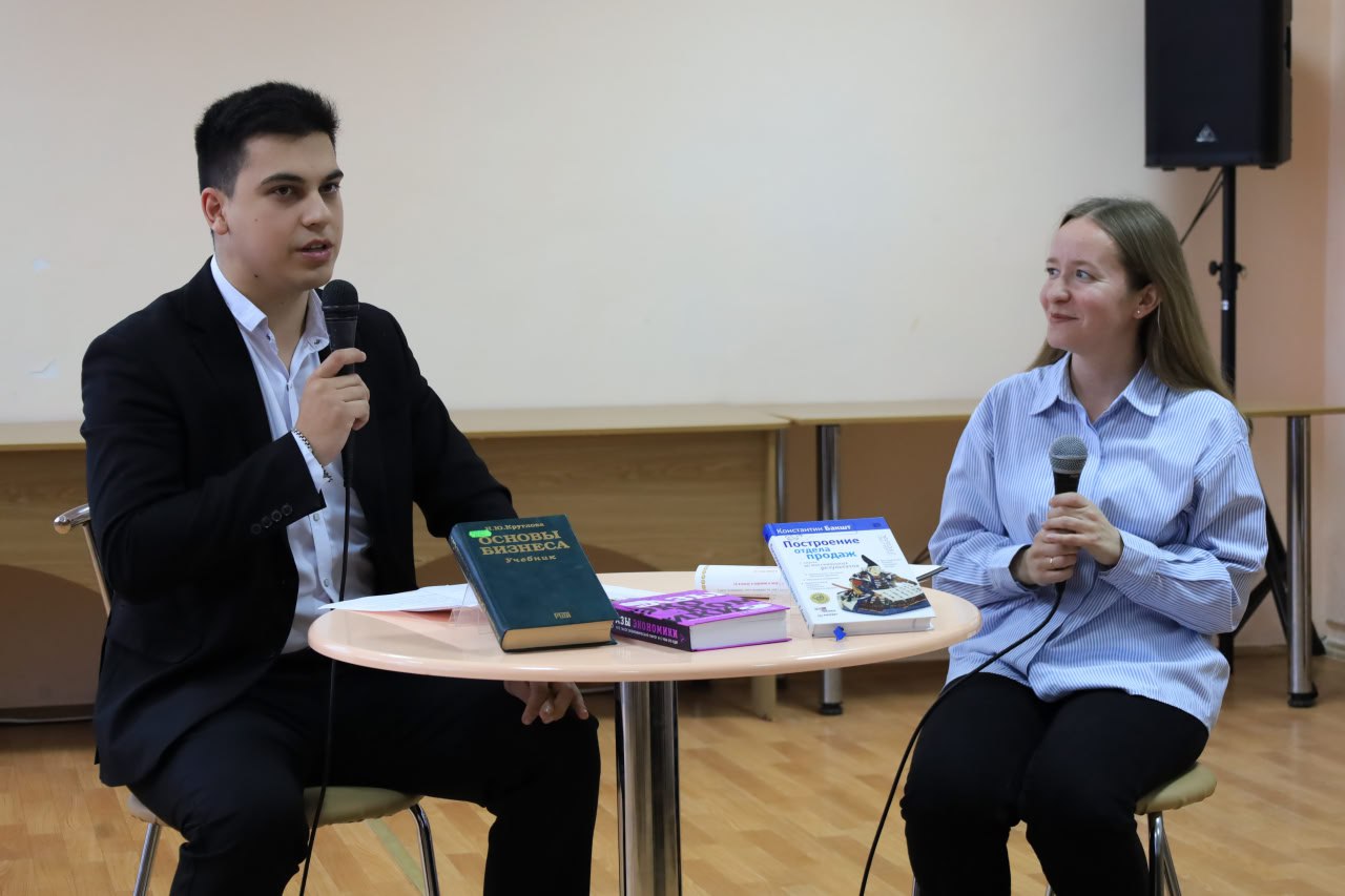 Ведущая мероприятия в рубрике «Интервью с интересным человеком» задала гостю более двадцати вопросов, которые касались как профессиональной деятельности банковского сотрудника, так и его увлечений, взглядов на жизнь и, конечно, любимых книг. Артем Олегович также подготовил для молодежи несколько вопросов и похвалил ребят за интересные ответы.