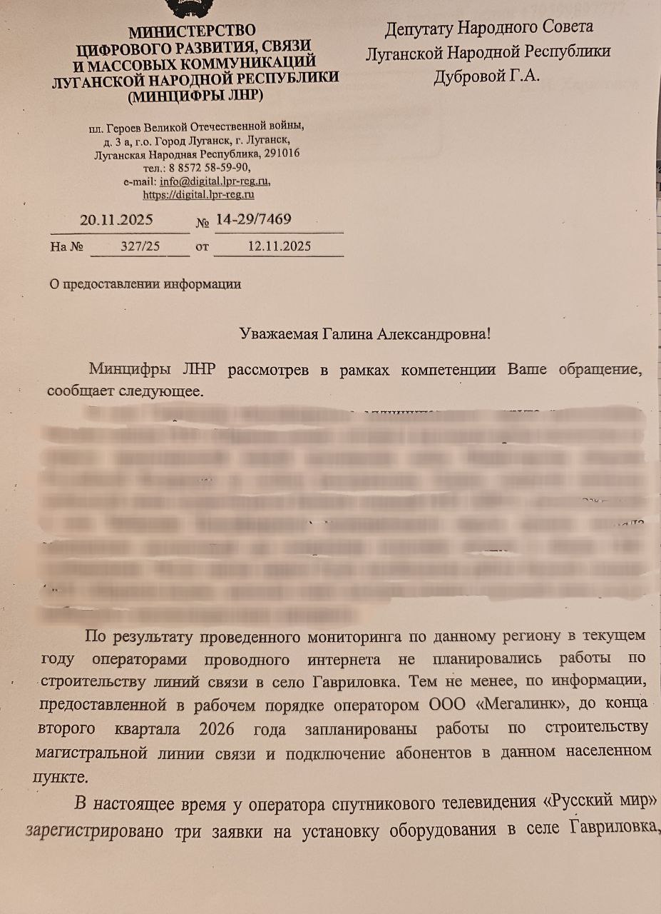 Оператор "Мегалинк" планирует провести проводной интернет в Гавриловку до конца второго квартала 2026 года.