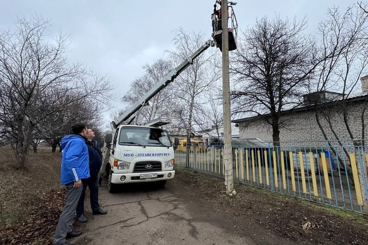 В поселке Красный Яр, который относится к округу Луганска, продолжается монтаж уличного освещения. Свет появится в районе учебно-воспитательного комплекса «Единство». Ранее директор школы и жители обратились за помощью к депутатам городского Совета и партии «Единая Россия».