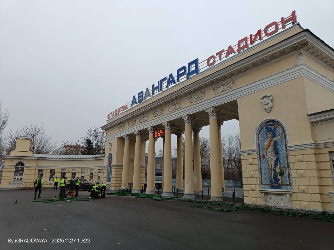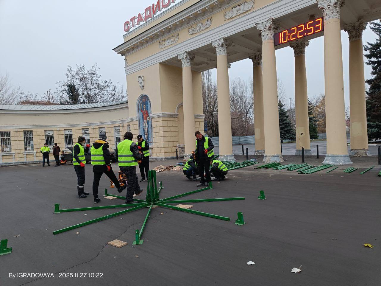 Еще одну красавицу-елочку устанавливают около стадиона «Авангард»