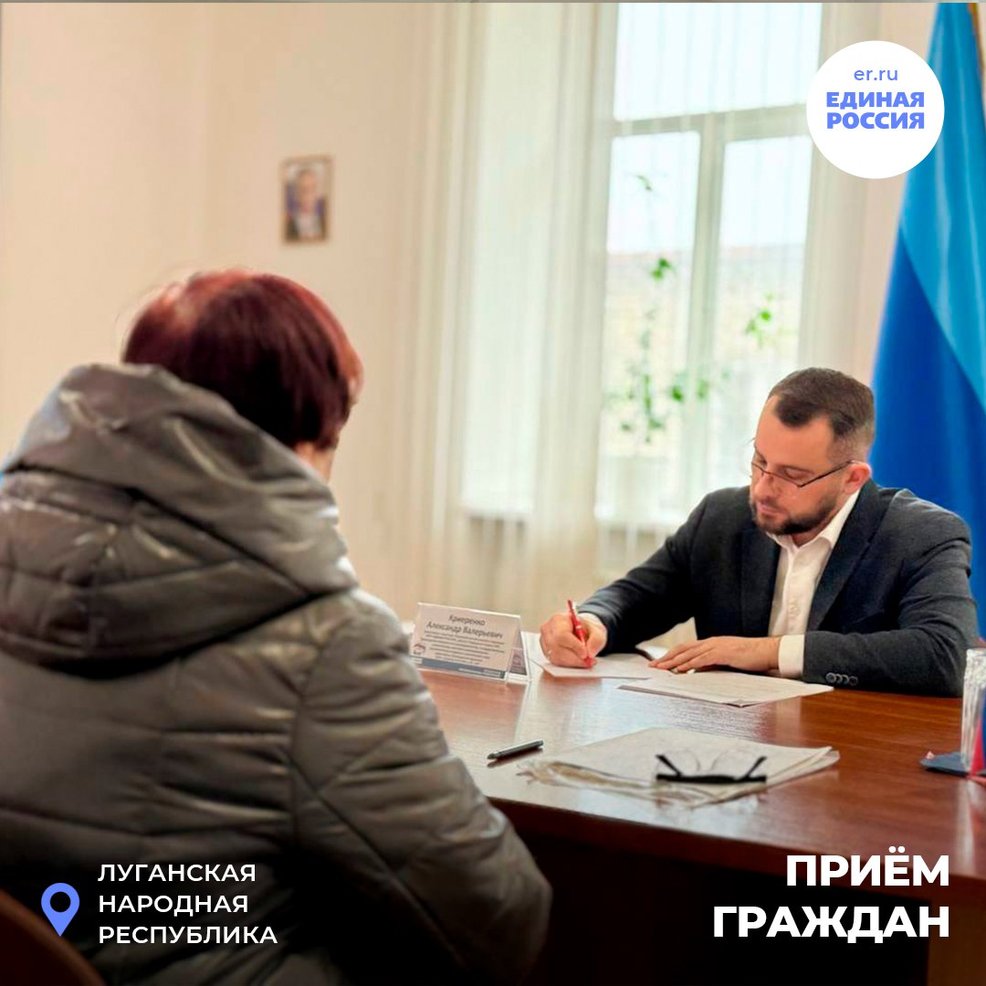 Заместитель Секретаря Луганского регионального отделения партии «Единая Россия» Александр Криеренко провёл прием граждан. Жители республики пришли на прием с вопросами, которые напрямую касаются качества их жизни: ремонт аварийной кровли пятиэтажного дома, неправильного начисления ЖКУ, о выплатах заработной платы в период 2014-2015 годов, оформления договора социального найма для жителей общежития.