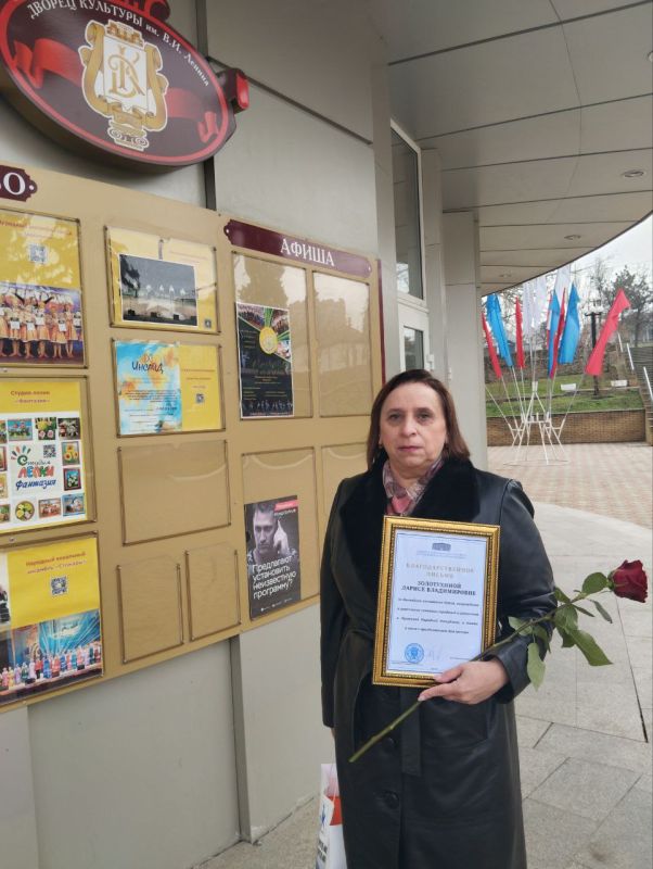 В знак признания заслуг представительниц муниципалитетов ЛНР отметили государственными наградами. Среди них – Лариса Владимировна Золотухина, педагог с 30-летним стажем, отдавшая школе более 10 лет в качестве заместителя директора по воспитательной работе. Она вырастила троих замечательных детей. Цену материнского подвига Лариса Владимировна знает, как никто другой: ее младший сын, Степан, героически погиб, защищая рубежи Луганской Народной Республики в самые трудные ее времена.