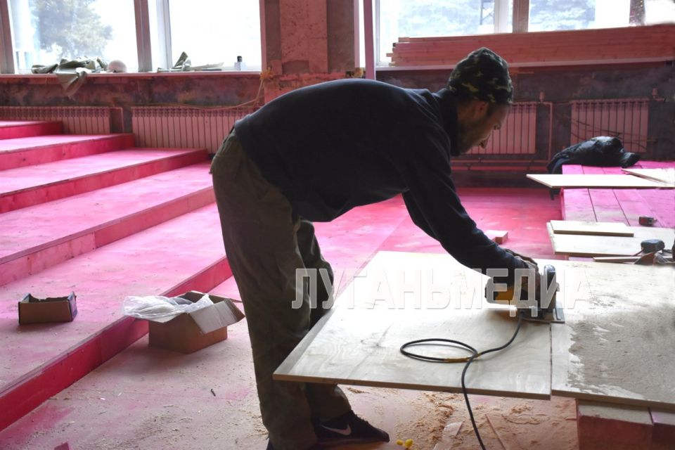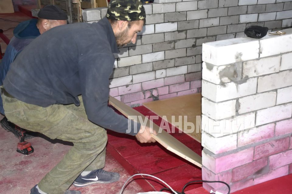 Сейчас работами охвачены сразу два фойе и концертный зал, строители трудятся быстро и профессионально. В Марковском округе бригада восстанавливала Бондаревскую гимназию, Краснопольскую школу. Теперь совместными усилиями местные и приезжие специалисты делают ремонт в МРДК.