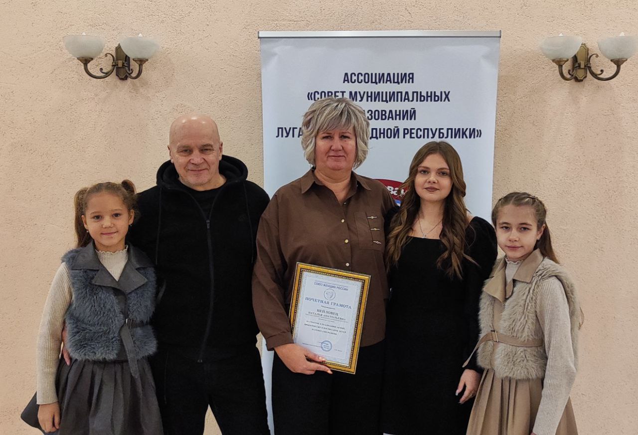 От города Свердловска в числе награждённых была Найловец Наталья, многодетная мама, член Совета женщин Свердловского муниципального округа ЛНР.