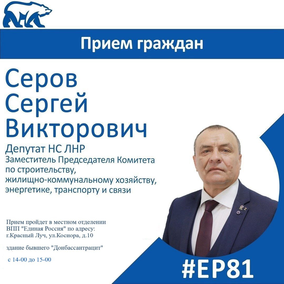 3 декабря с 14:00 до 15:00 прием граждан по вопросам ЖКХ проведет депутат Народного Совета ЛНР Сергей Серов;